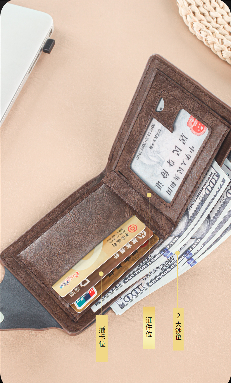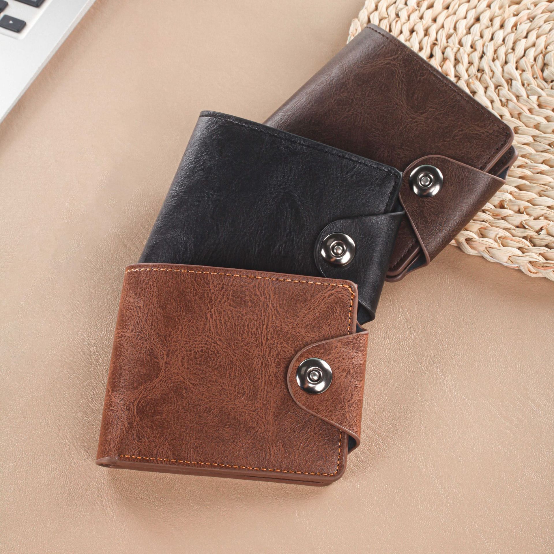 유럽과 미국의 짧은 지갑 남성용 지갑 세련된 자석 버클 멀티 카드 슬롯 동전 지갑 더블 라인 카드 홀더 지갑 도매스토어 가기
