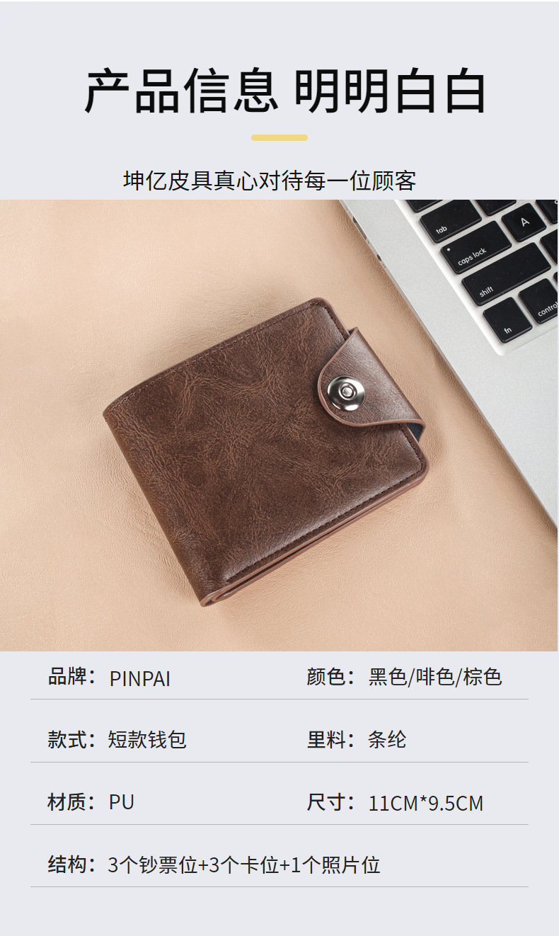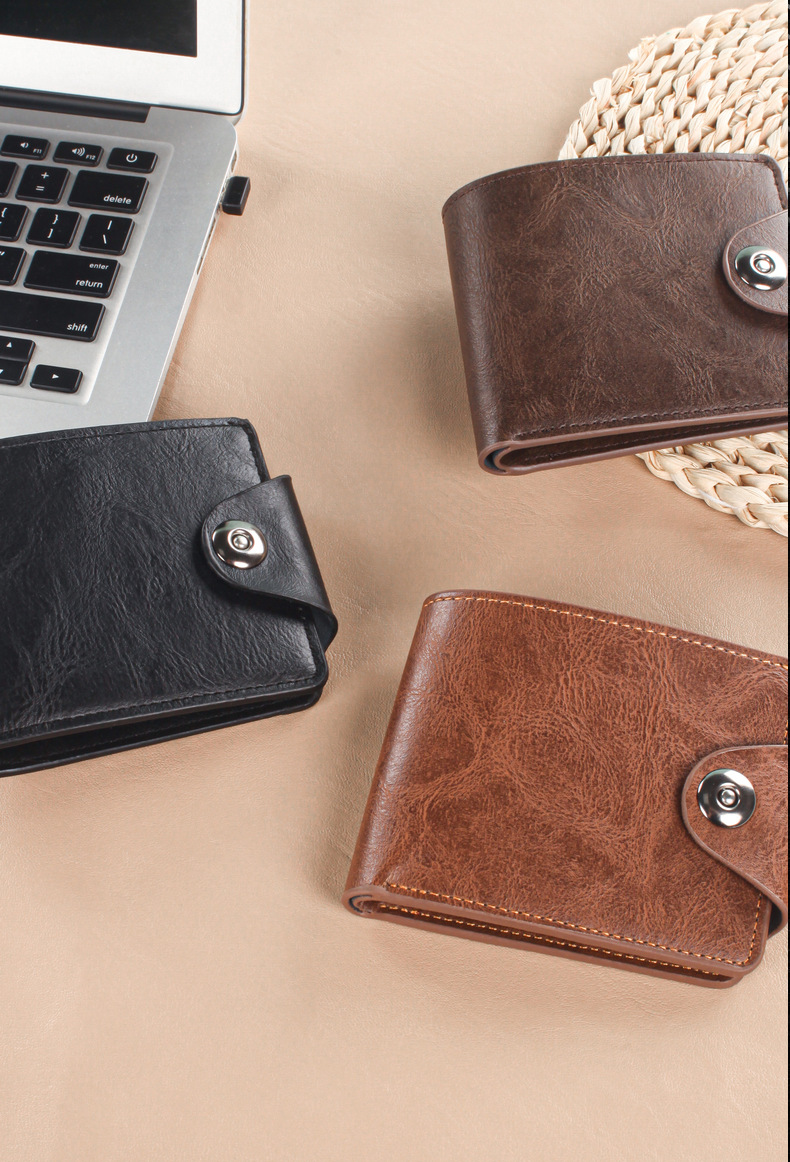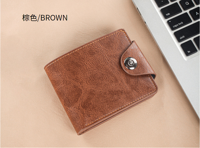 유럽과 미국의 짧은 지갑 남성용 지갑 세련된 자석 버클 멀티 카드 슬롯 동전 지갑 더블 라인 카드 홀더 지갑 도매