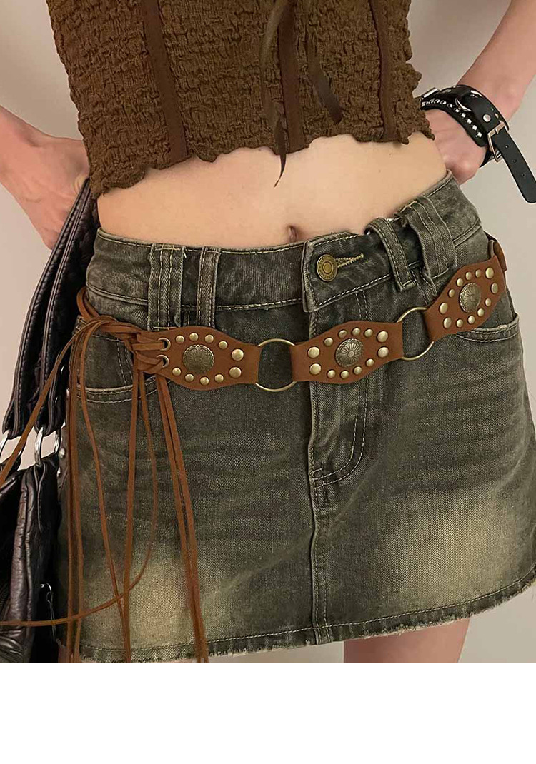 레트로 웨스턴 리벳 벨트 여성 민족 스타일 보헤미안 벨트 스커트와 바지 허리띠 액세서리 브라운스토어 가기