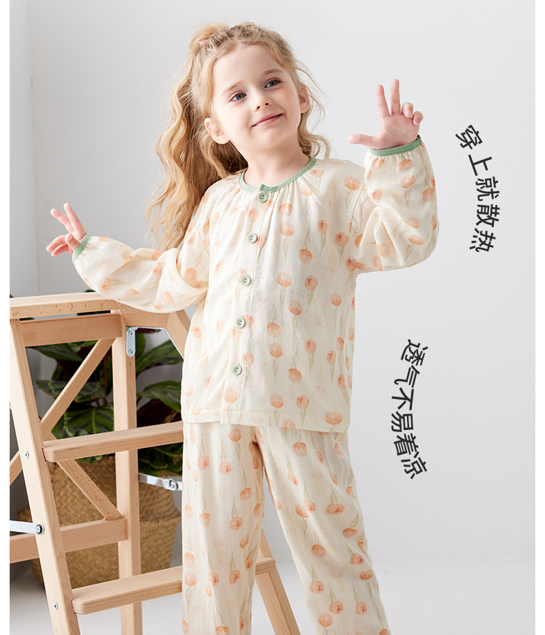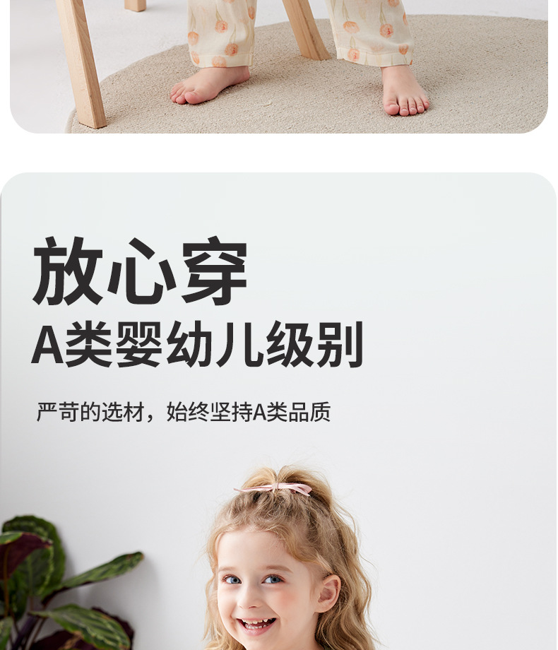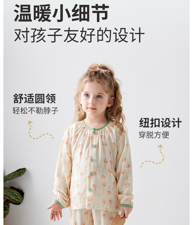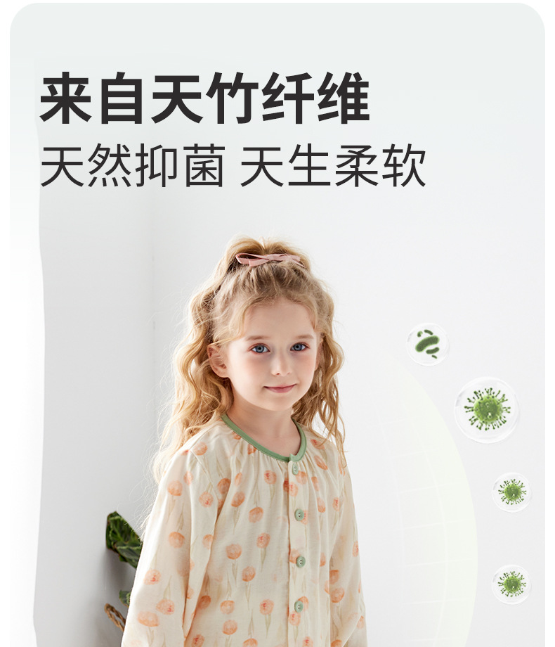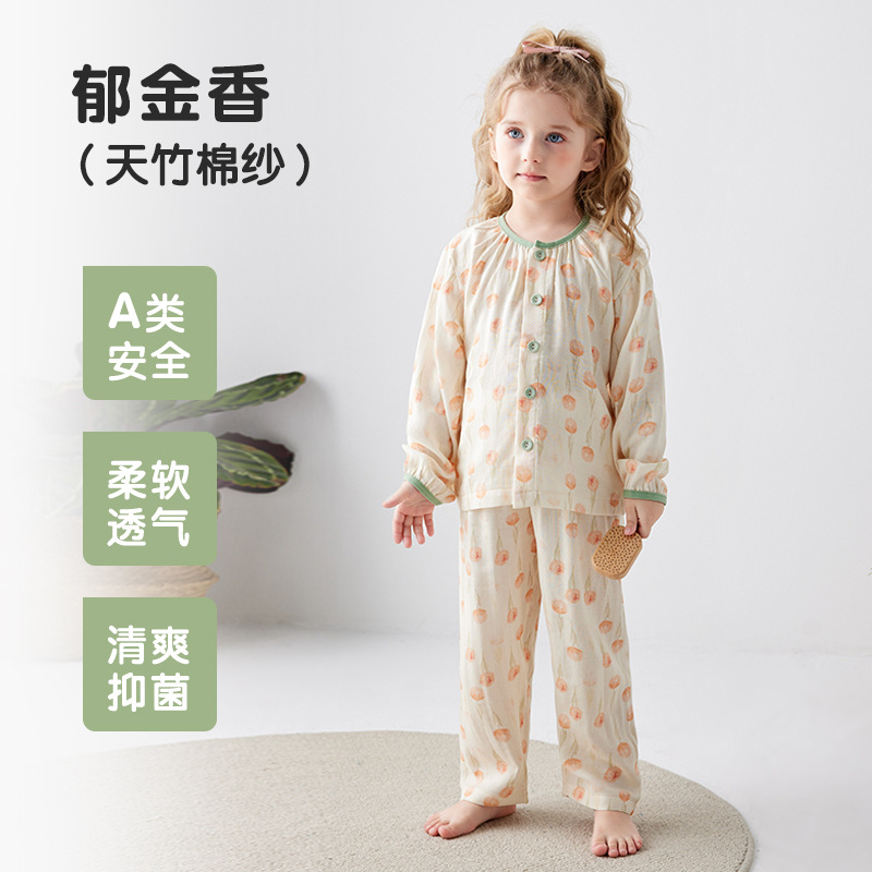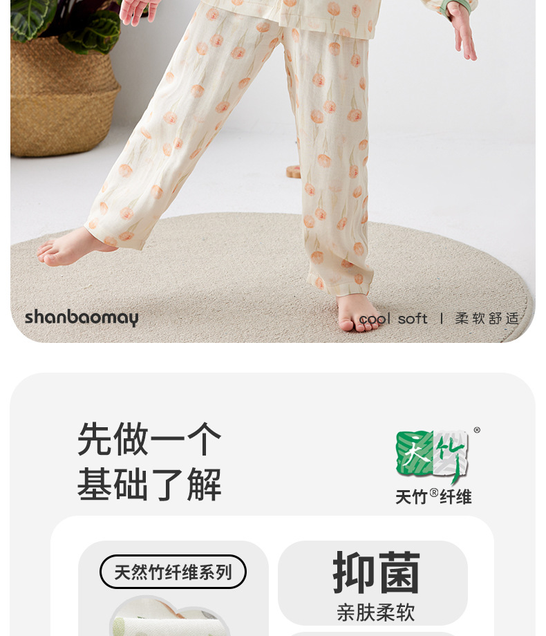 Shangbaomai 봄과 여름 어린이 잠옷 얇은 천 대나무 섬유 면사 소녀 홈 의류 세트 클래스 A 작고 신선하고 통기성스토어 가기