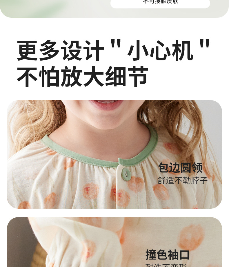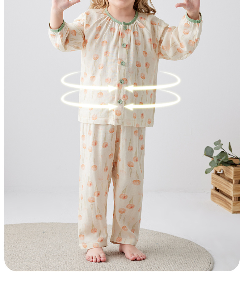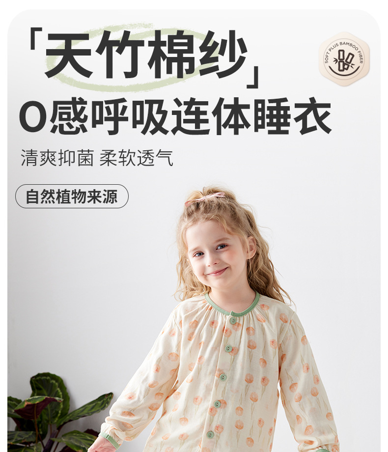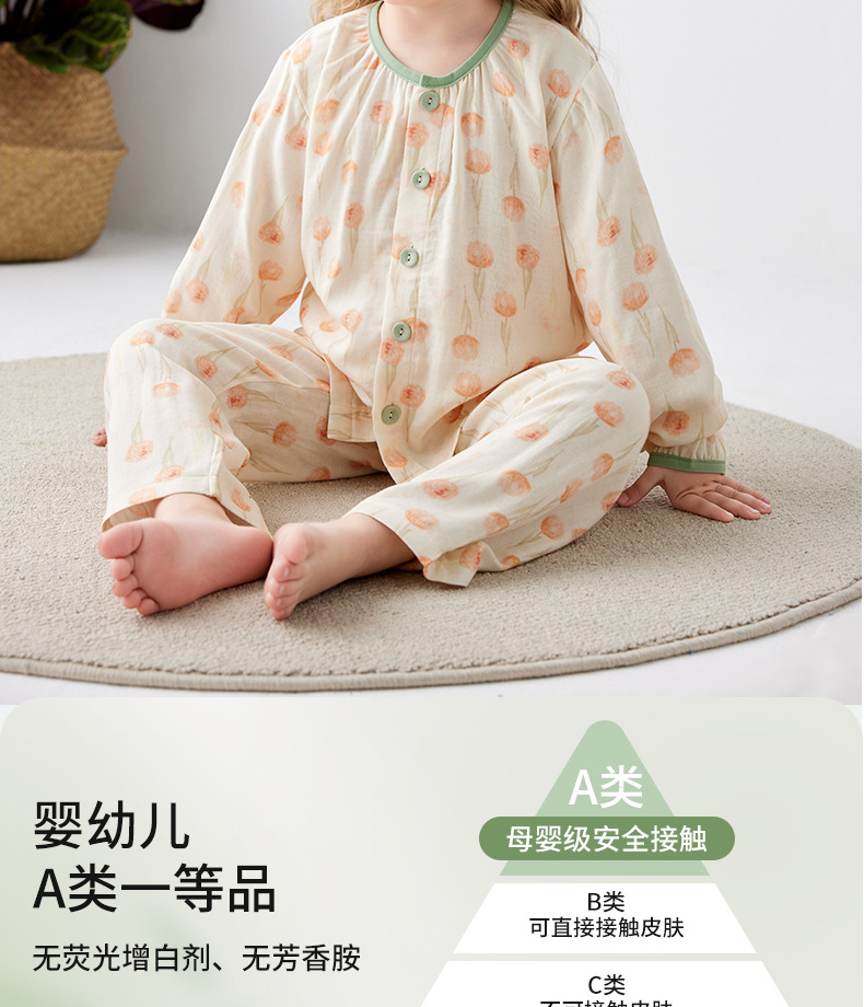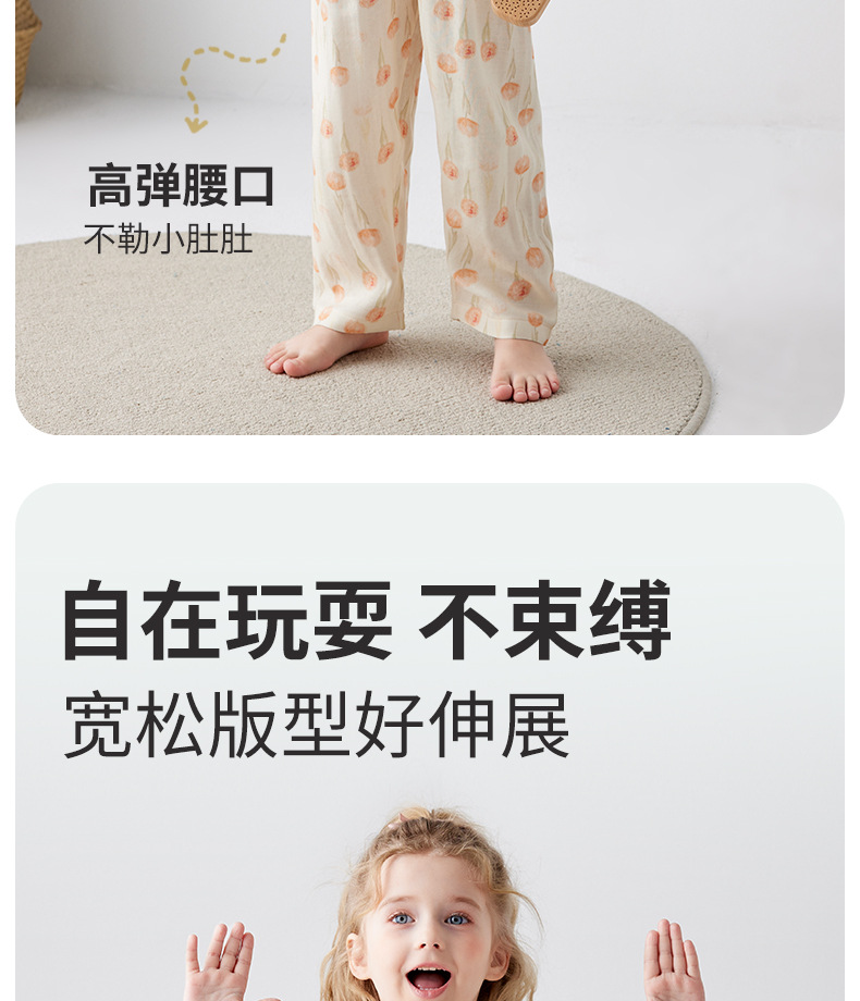 Shangbaomai 봄과 여름 어린이 잠옷 얇은 천 대나무 섬유 면사 소녀 홈 의류 세트 클래스 A 작고 신선하고 통기성스토어 가기