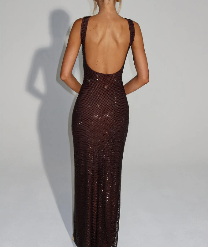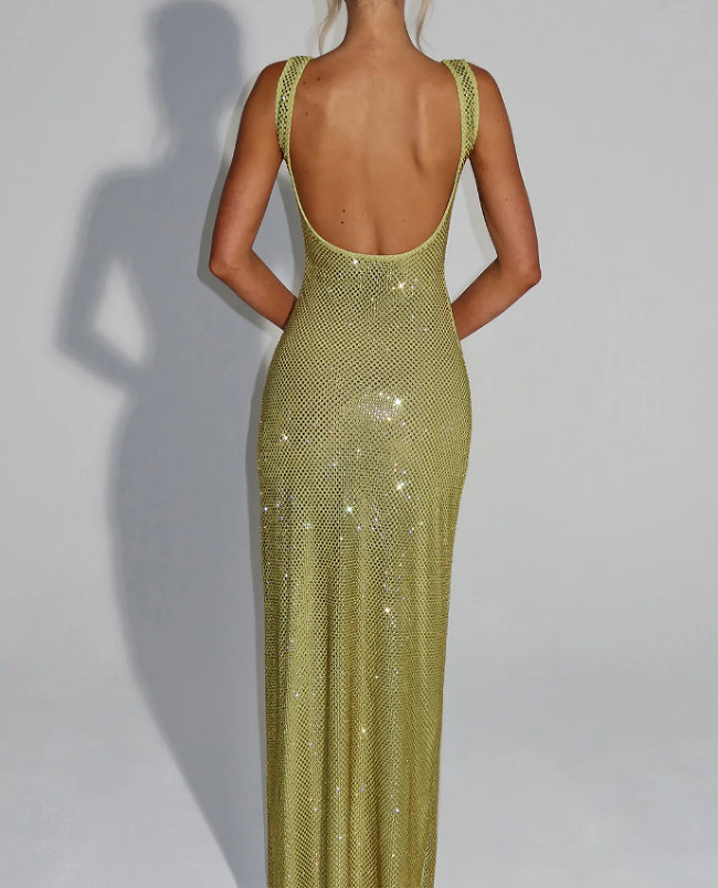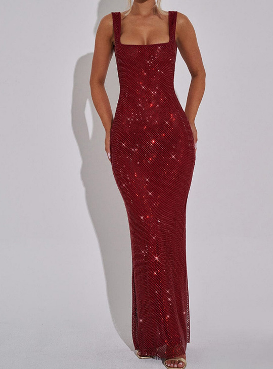 여성을위한 섹시한 더블 숄더 스트랩 스팽글 메쉬 다이아몬드 서스펜더 드레스 봄과 여름 새로운 기질 허리 풀오버 힙 스커트