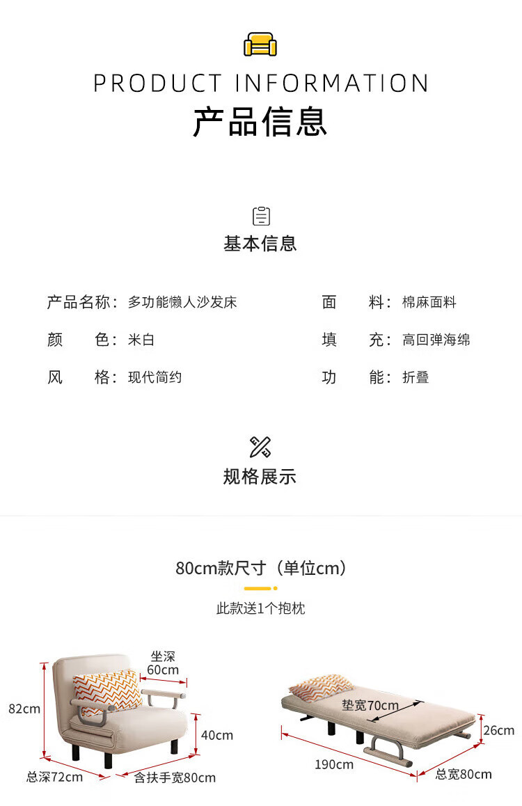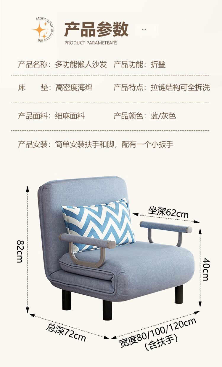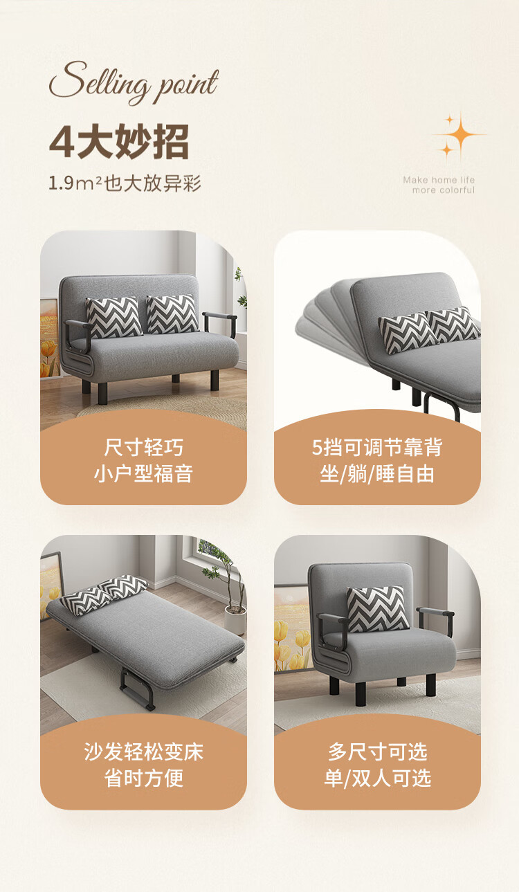 소파 베드 이중 목적 접이식 싱글 거실 패브릭 사무실 점심 시간 간단한 침실 분리 및 세척 가능 YZ901스토어 가기