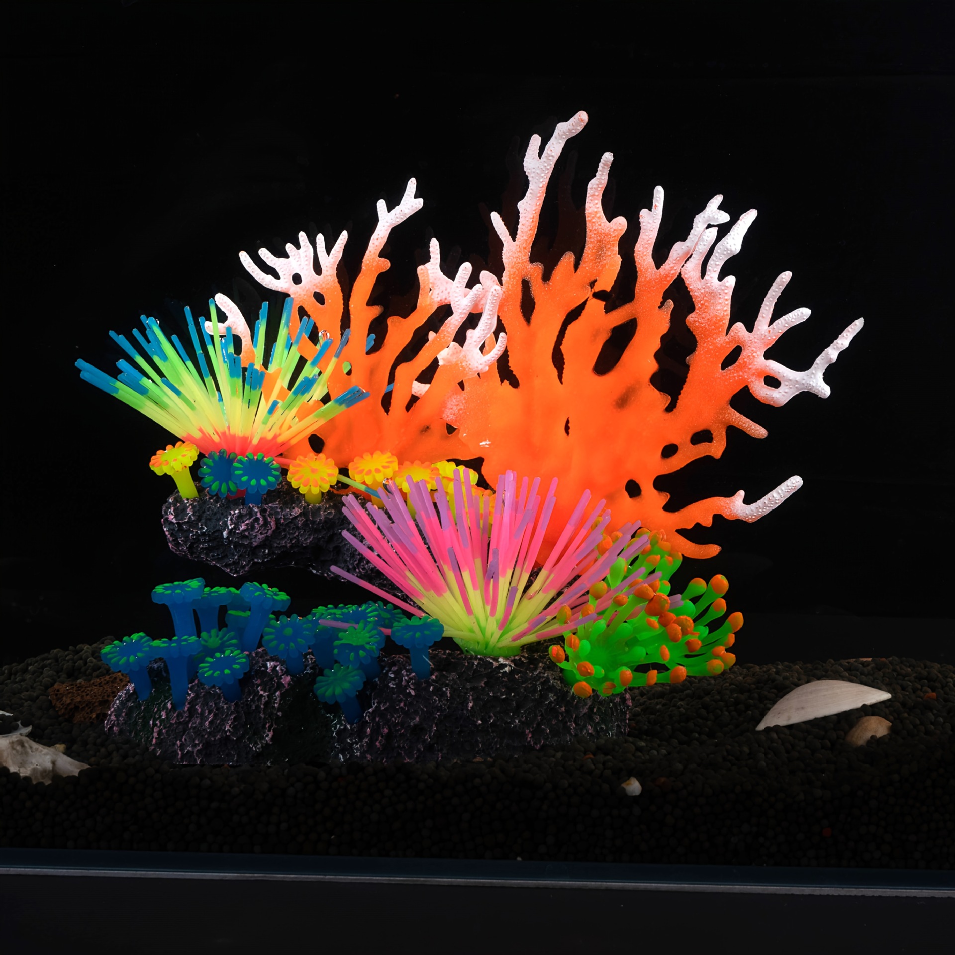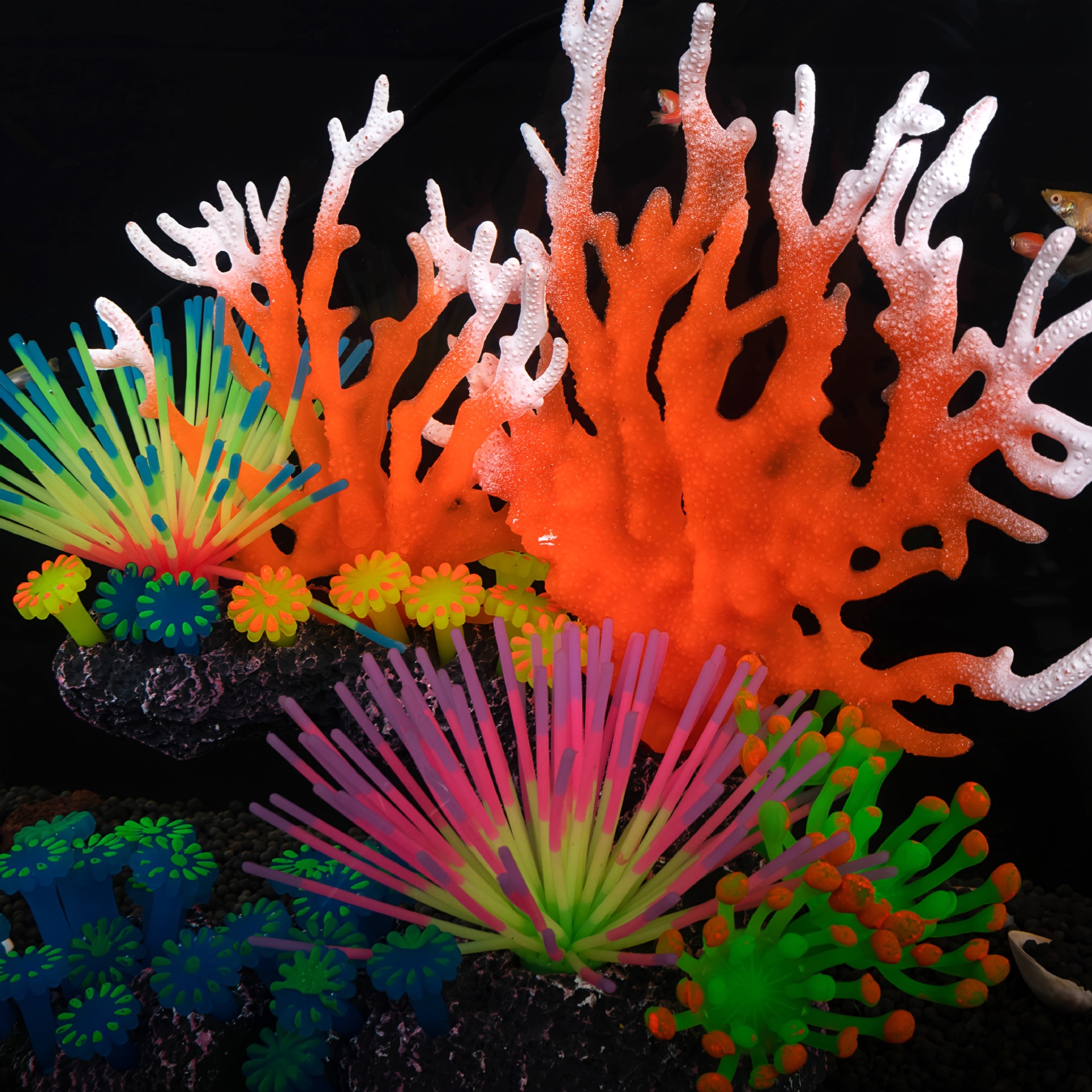 제조 업체 도매 새로운 수지 실리콘 조합 시뮬레이션 산호 수족관 장식품 해저 식물 수생 식물 장식품