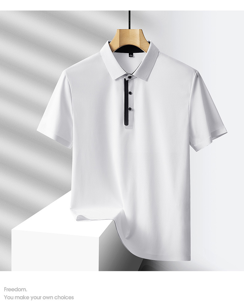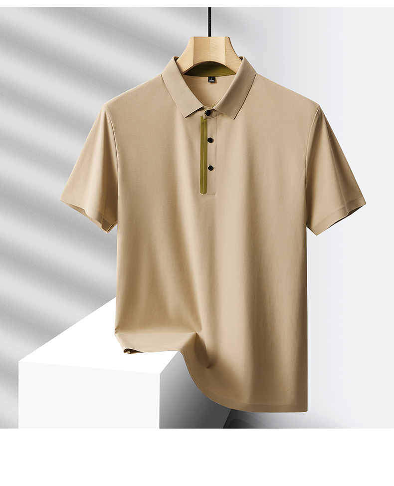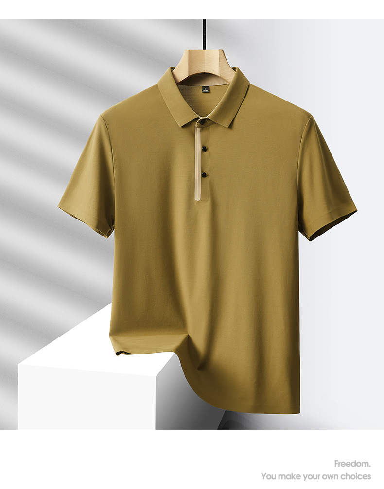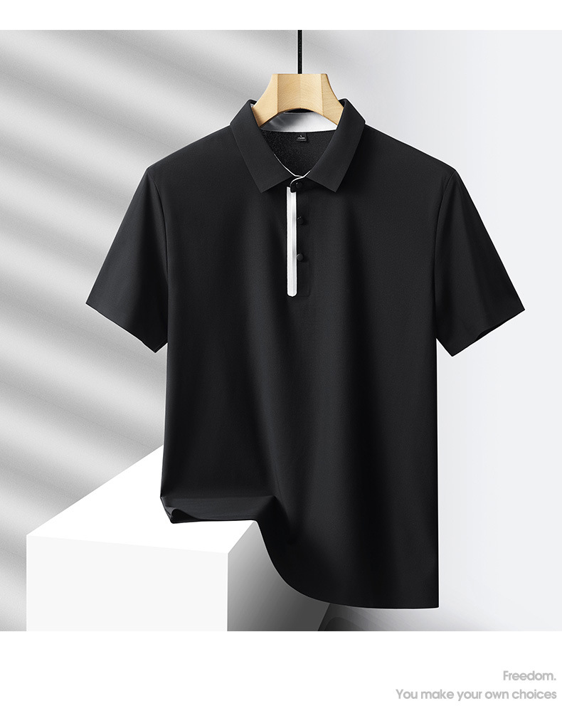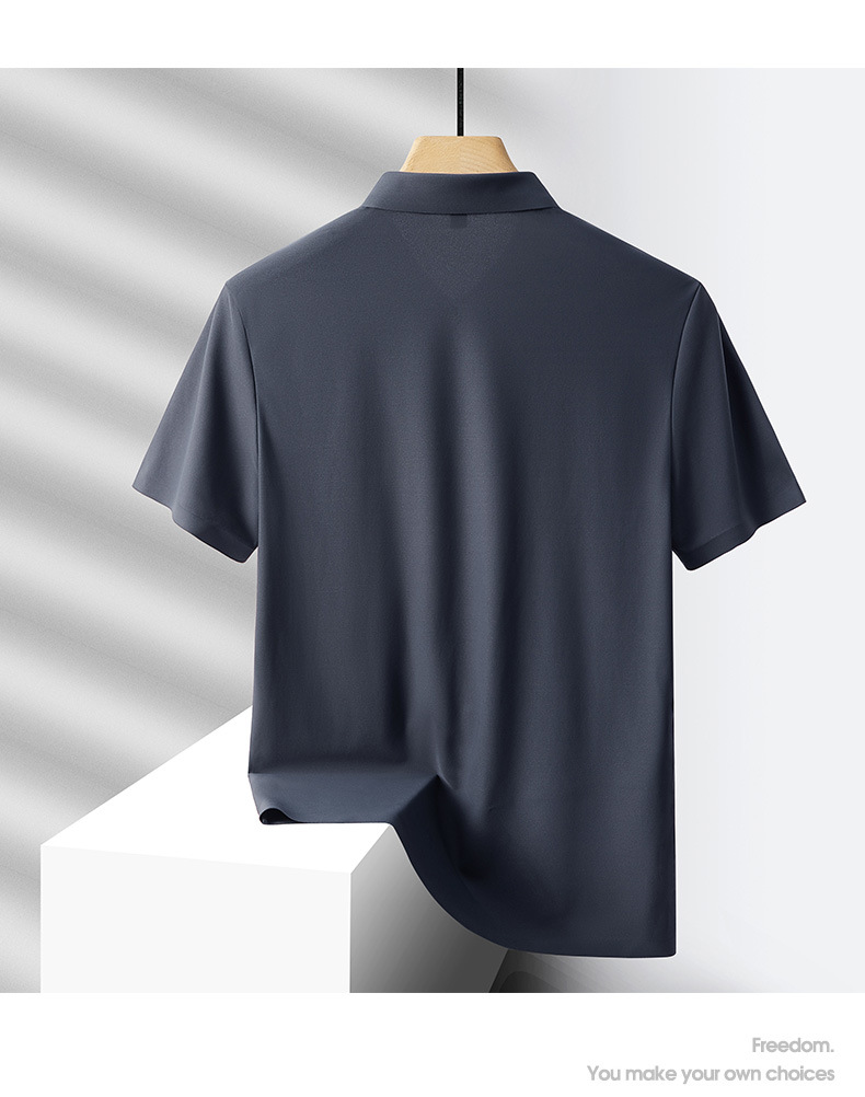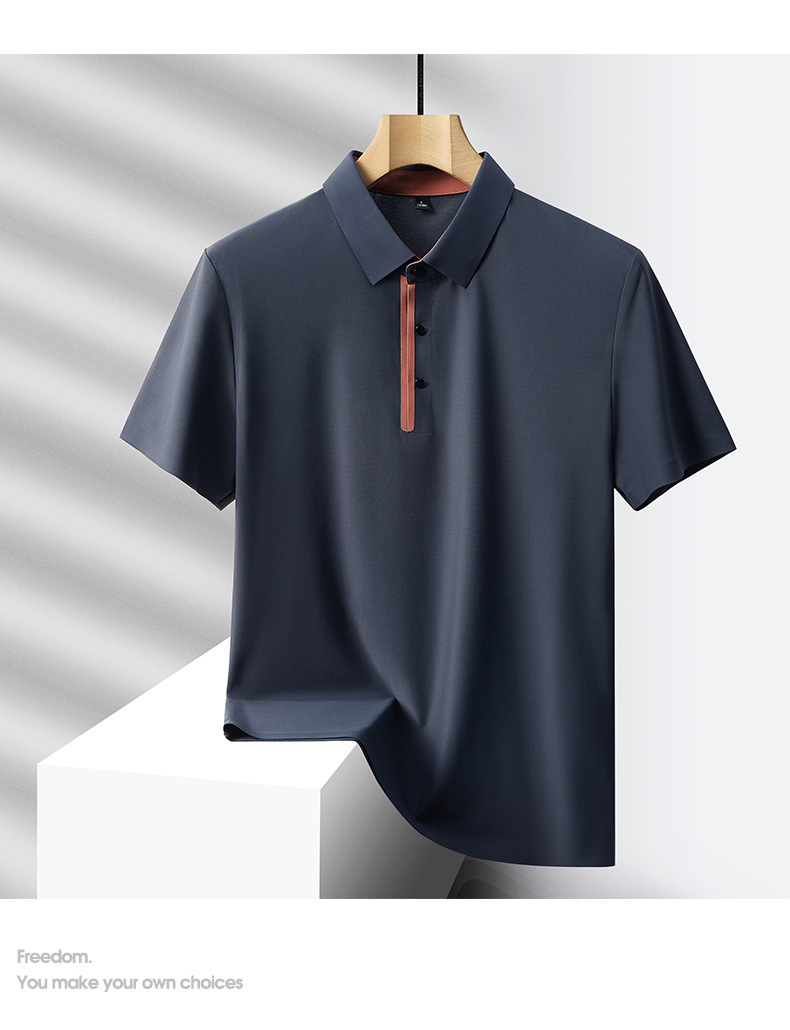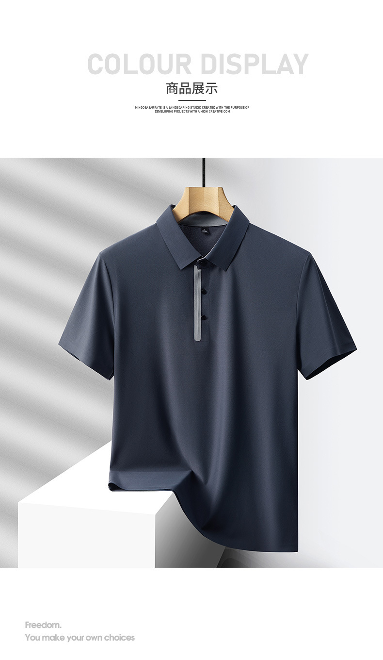 아이스 실크 반팔 폴로 셔츠 남성 여름 얇은 통기성 비즈니스 속건 탑 남성용 심리스 라펠 폴로 셔츠