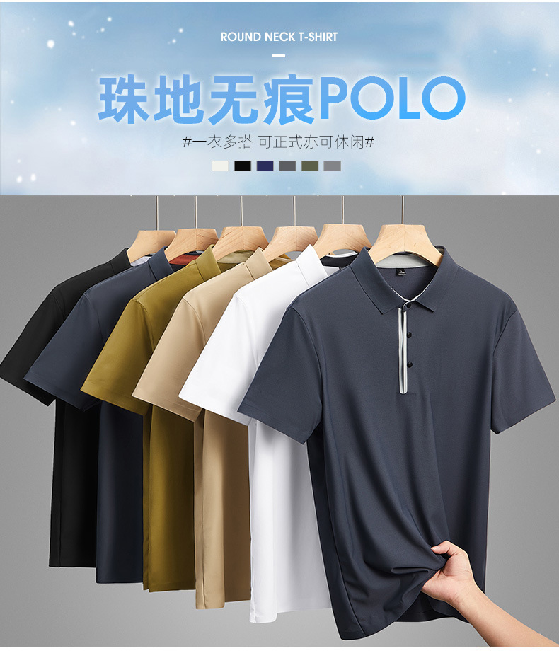 아이스 실크 반팔 폴로 셔츠 남성 여름 얇은 통기성 비즈니스 속건 탑 남성용 심리스 라펠 폴로 셔츠스토어 가기