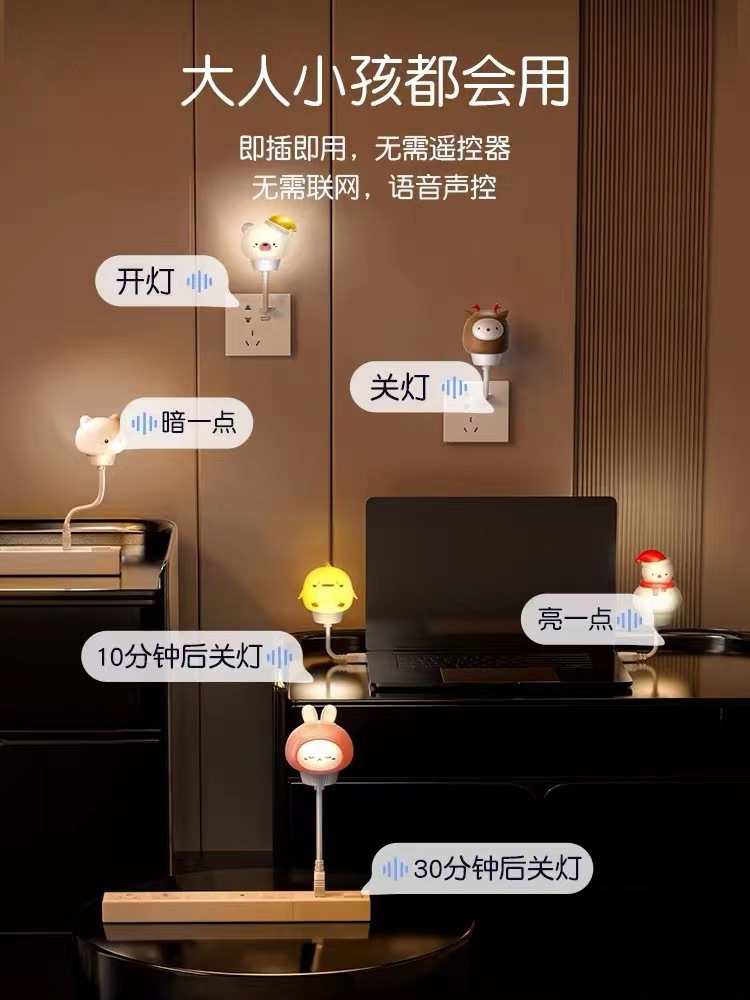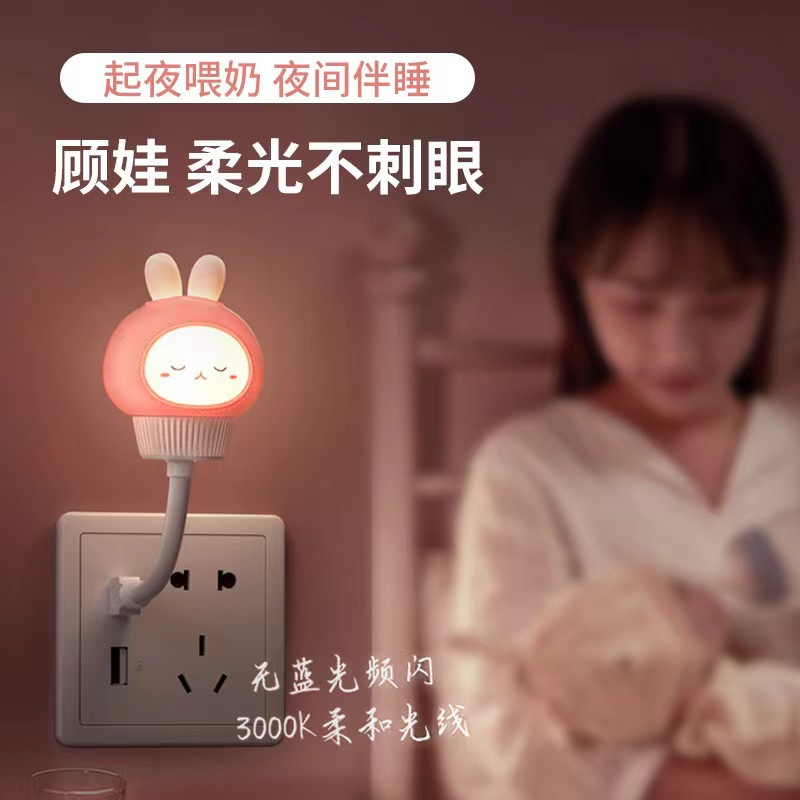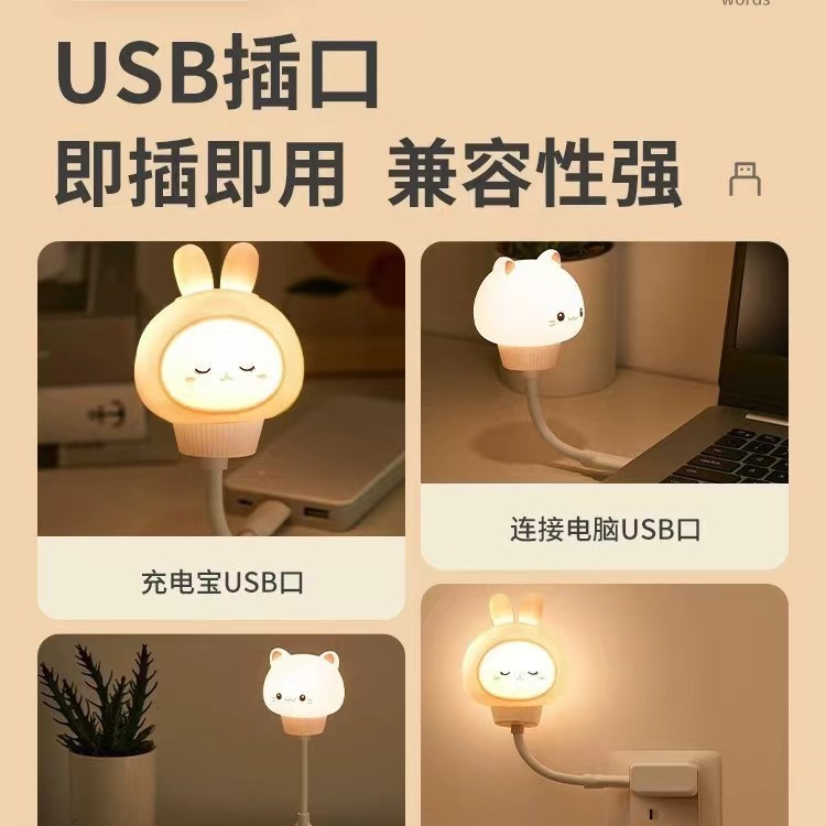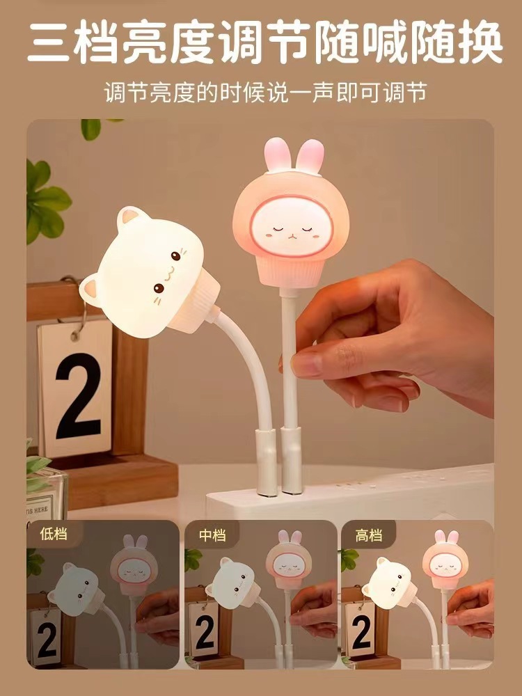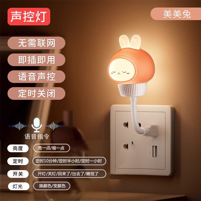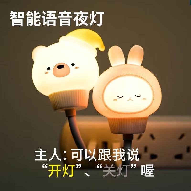 지능형 음성 제어 토끼 USB 침실 머리맡 음성 제어 부드러운 빛 야간 조명 야간 수유 수면 야간 조명