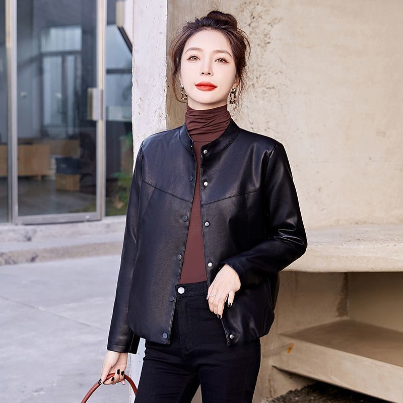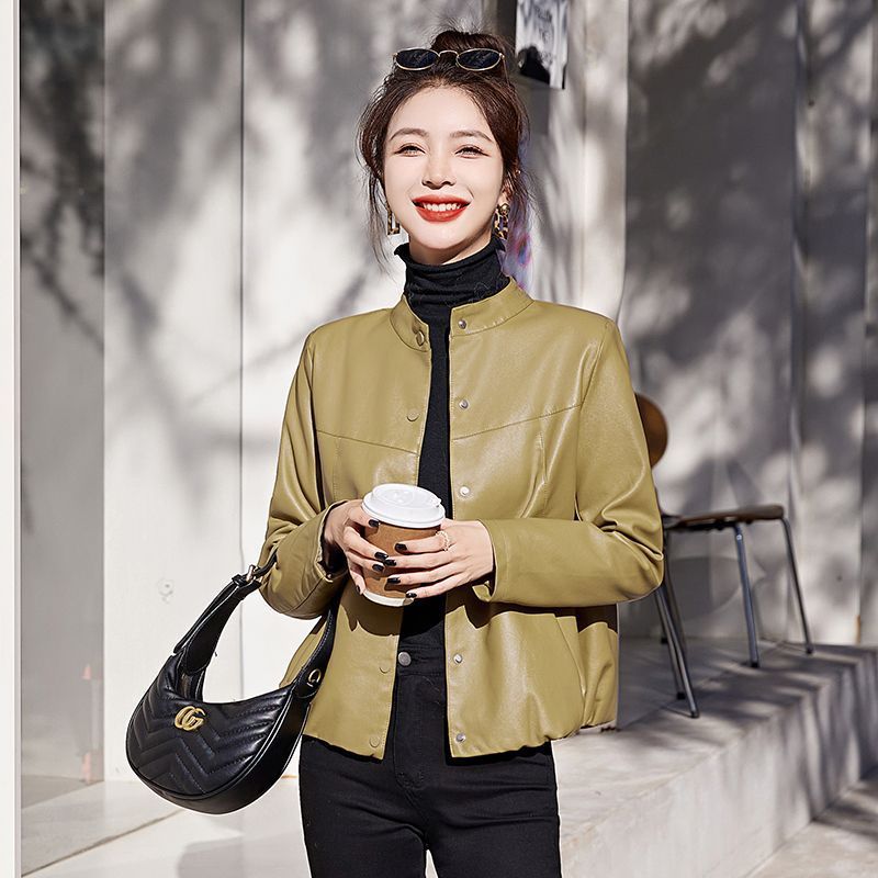 봄과 가을 새로운 Haining 정품 가죽 자켓 여성 짧은 2025 양피 자켓 패션 느슨한 작은 코트스토어 가기