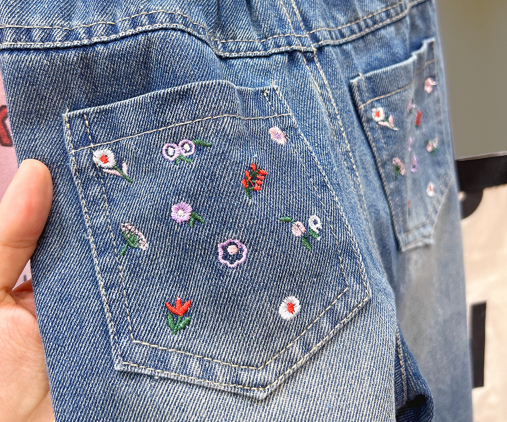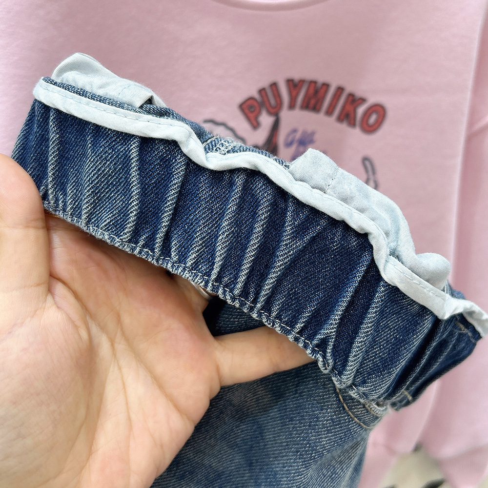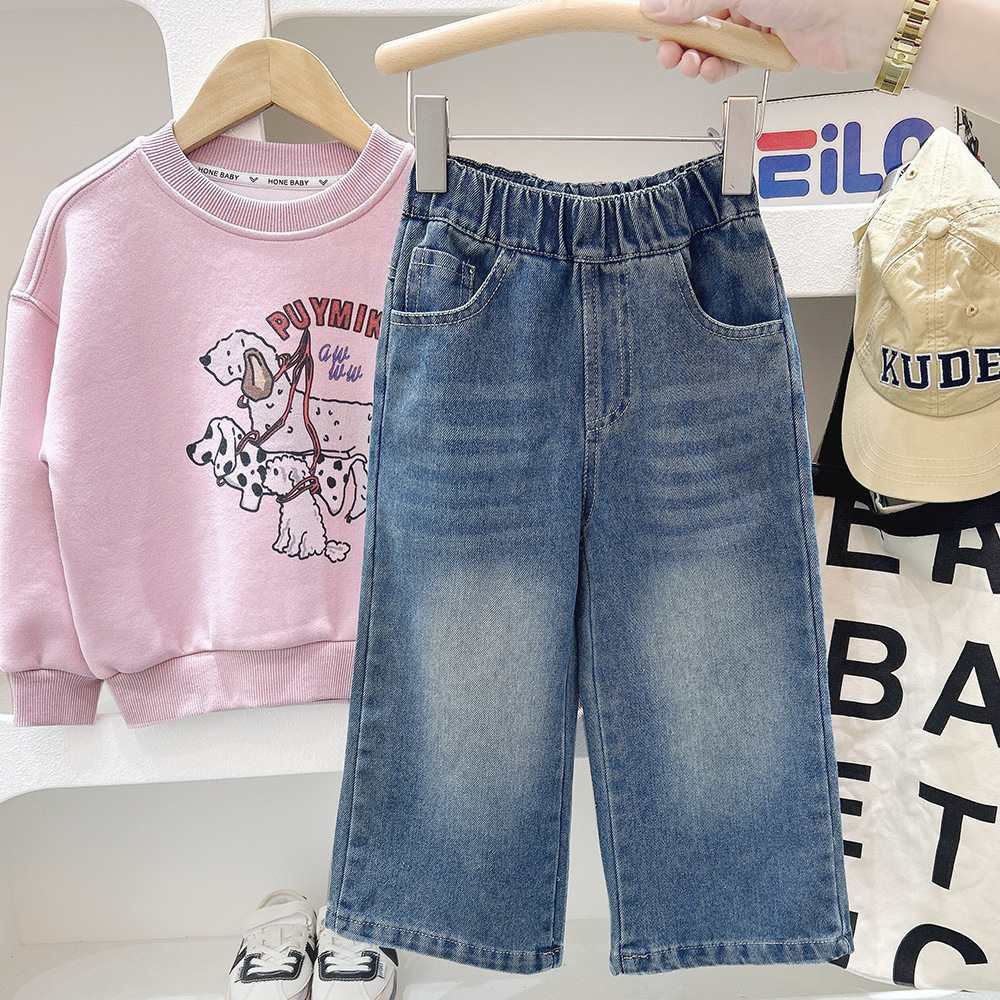 여아 데님 바지 가을 2025 봄, 가을 새로운 스타일 데님 와이드 팬츠 중대형 아동 루즈 스트레이트 팬츠스토어 가기