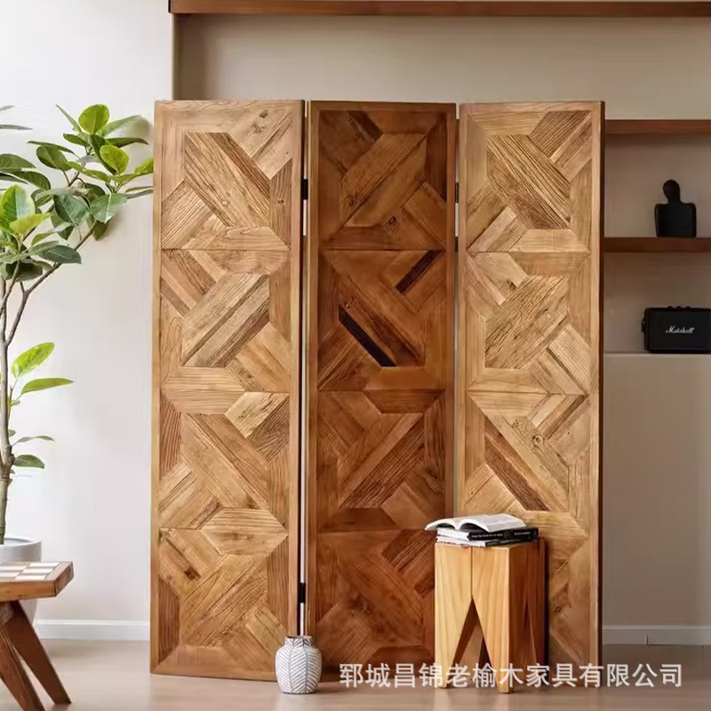중세 느릅나무 마루 스크린 입구 칸막이 벽 레스토랑 칸막이 스크린 단단한 나무 3개의 팬 접이식 이동 스크린