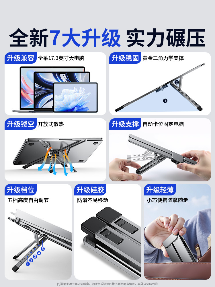 알루미늄 합금 노트북 스탠드 접이식 스토리지 휴대용 기본 높이 냉각 스탠드 국경 간 도매스토어 가기