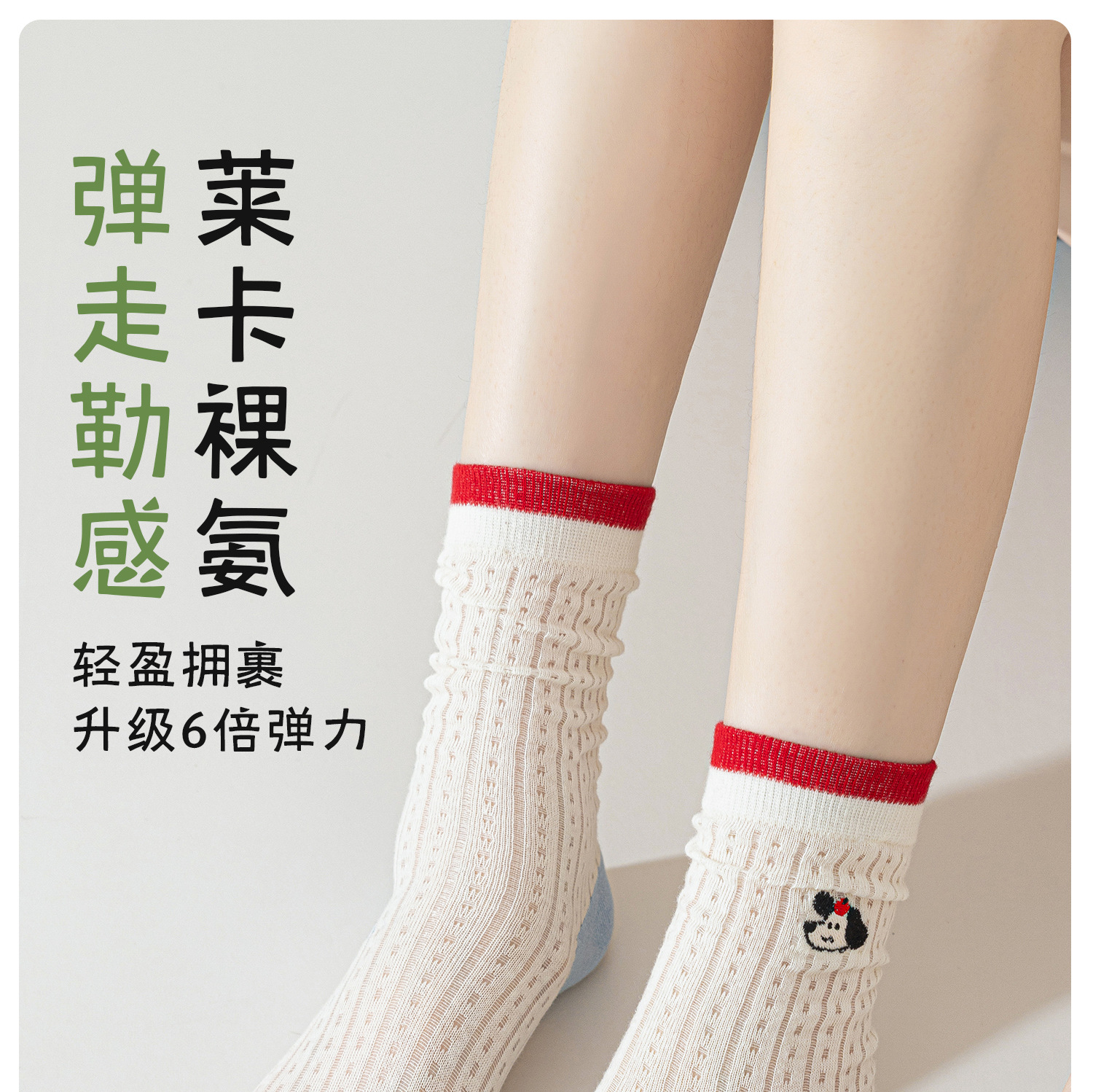 여성용 한국 스타일 ins 스타일 종아리 양말, 여성용 일본 대학 스타일 양말, 여름 얇은 메쉬 통기성 여성용 면 양말스토어 가기