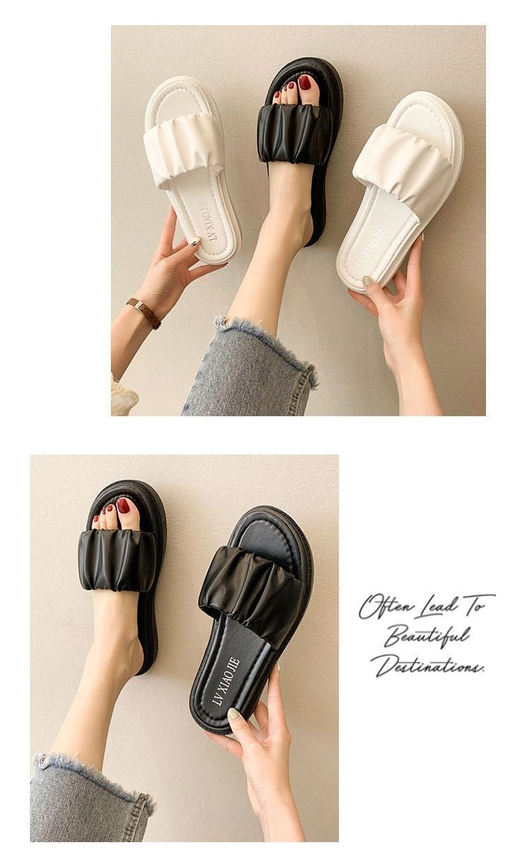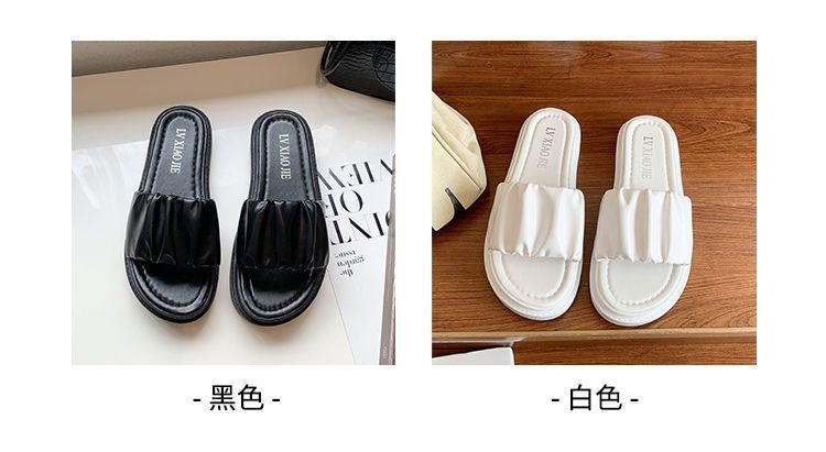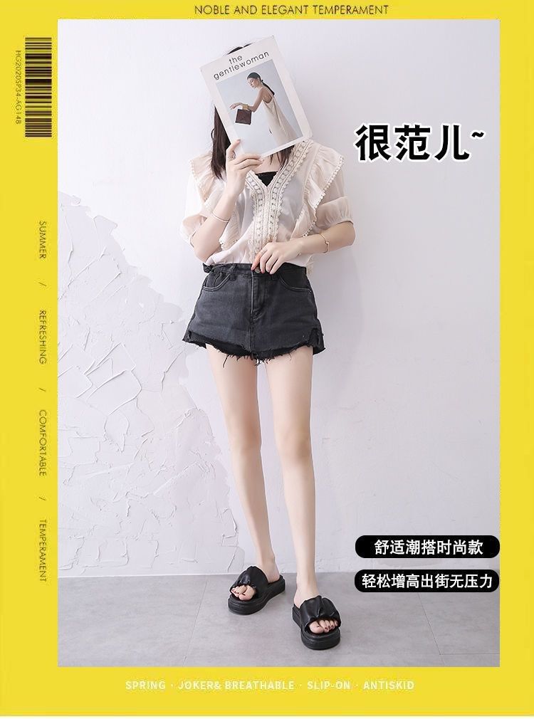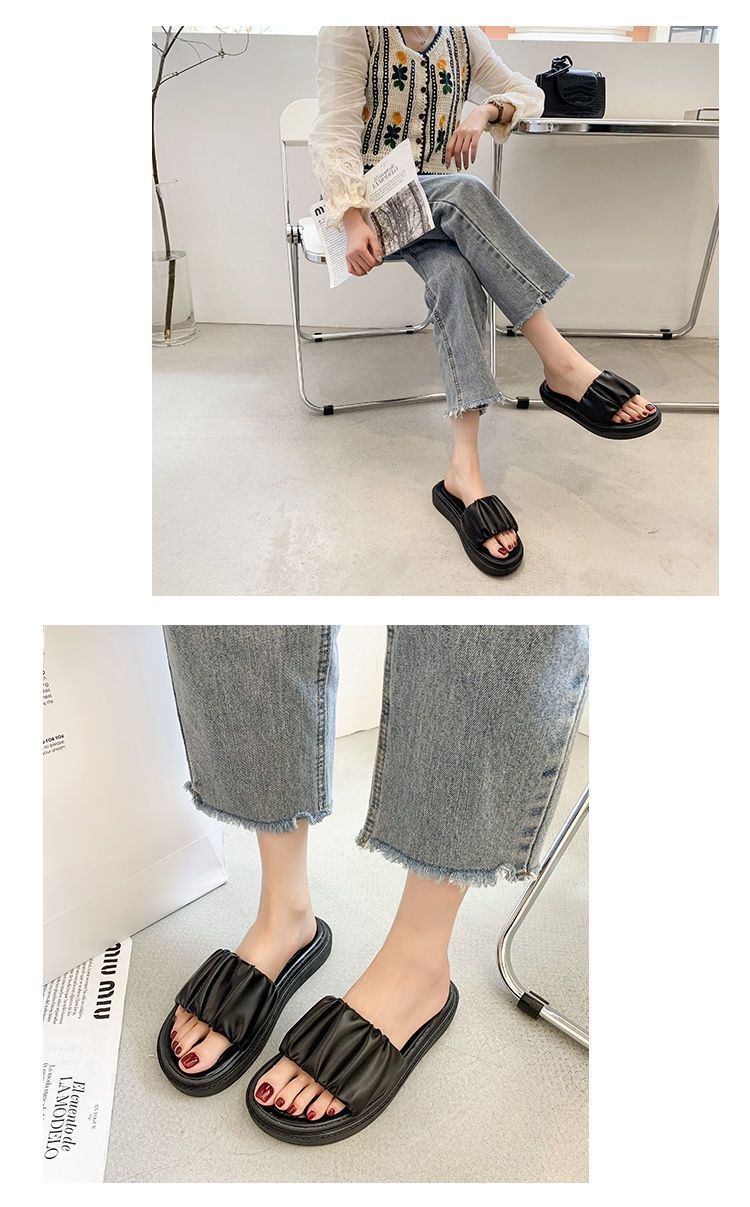 여름 아우터로 입기 좋은 여성용 진짜 부드러운 가죽 부드러운 밑창 슬리퍼, 신상 인터넷 연예인 학생 두꺼운 밑창 플랫폼 캐주얼 미끄럼 방지 쿨 스타일