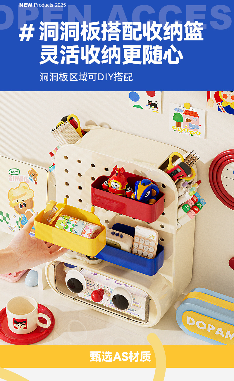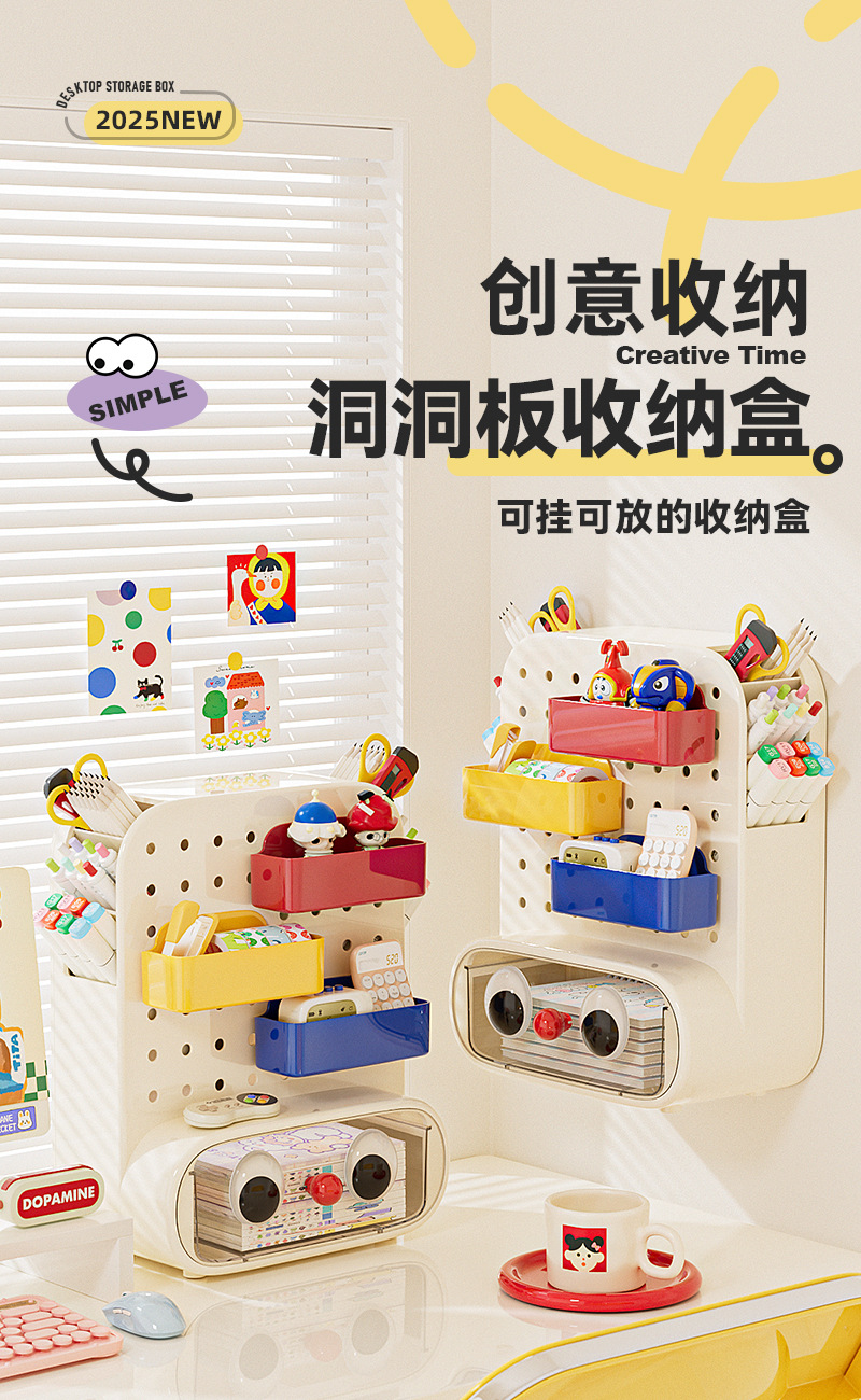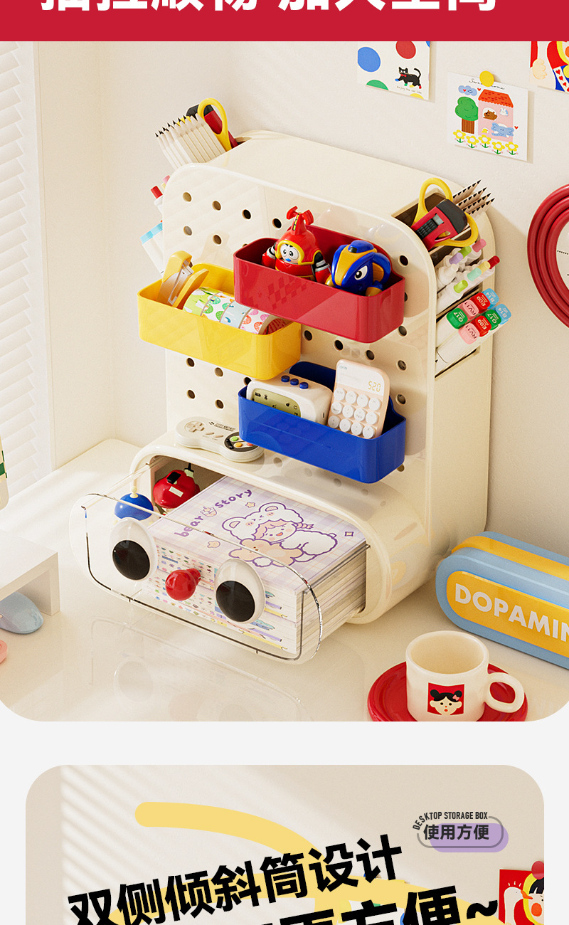 桌面洞洞板收纳盒小学生文具笔筒小抽屉整理盒抽屉式洞洞板置物架