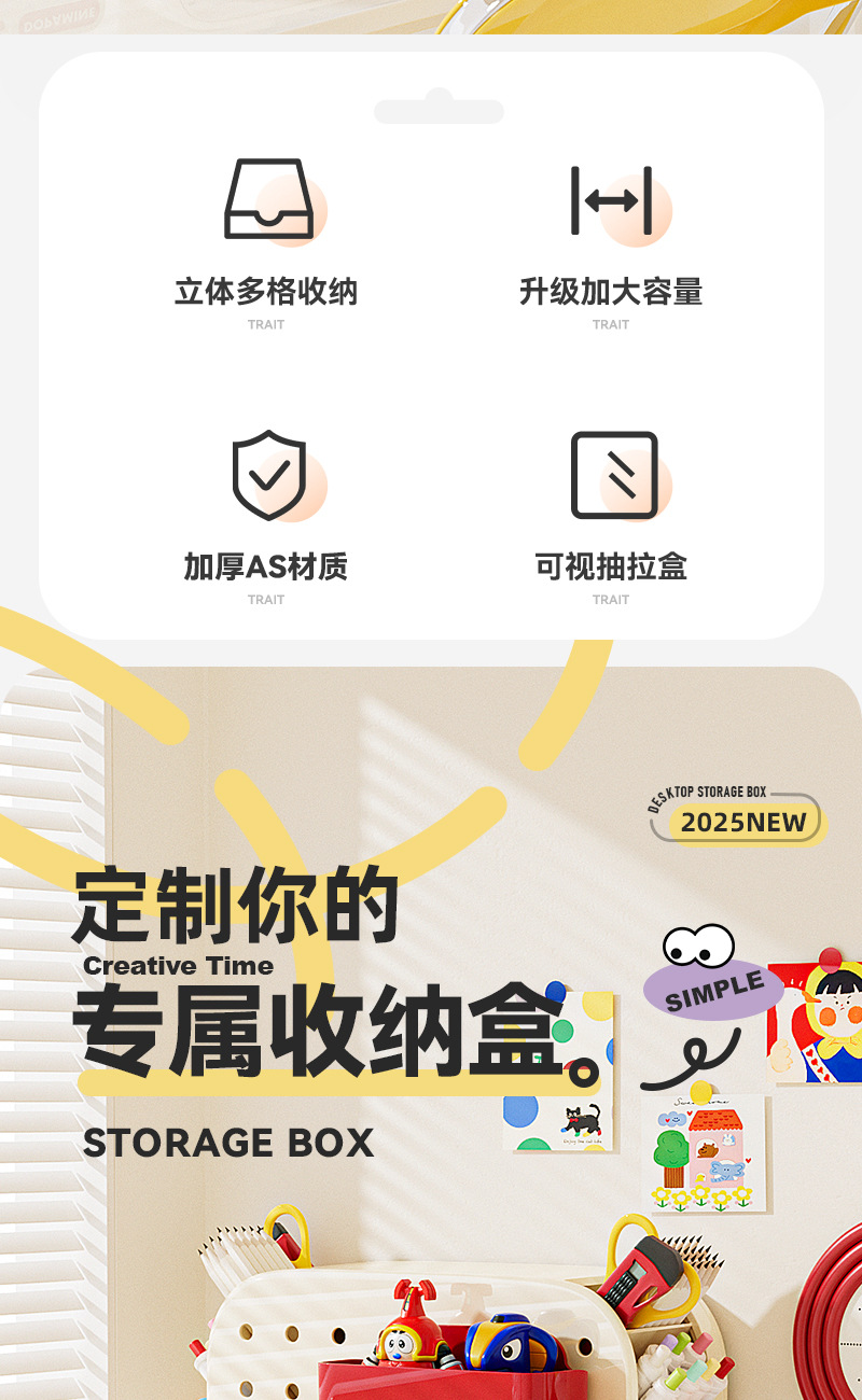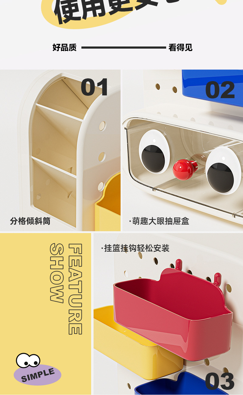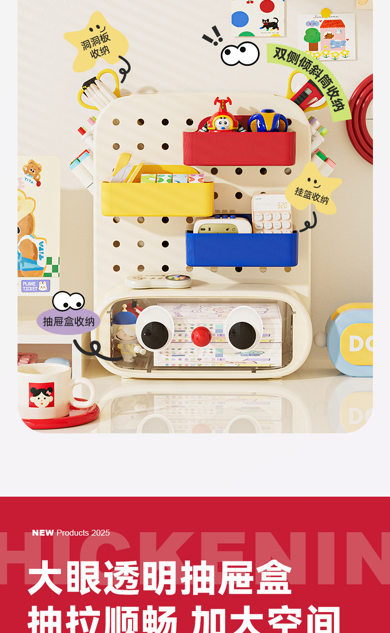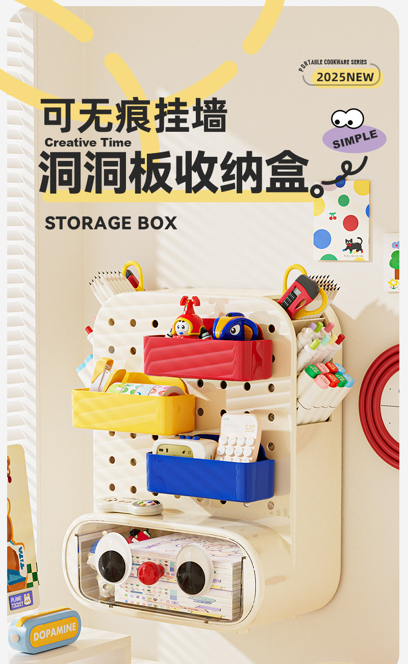 桌面洞洞板收纳盒小学生文具笔筒小抽屉整理盒抽屉式洞洞板置物架