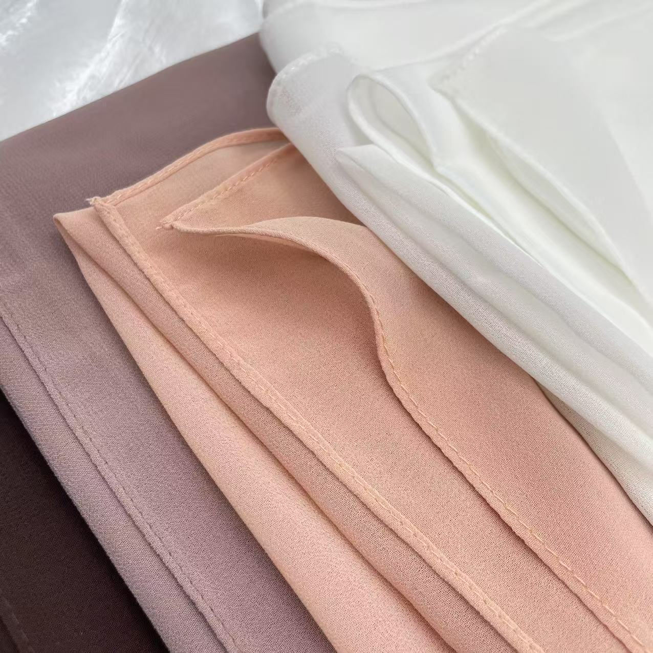 选用75D珍珠雪纺面料,直角做工