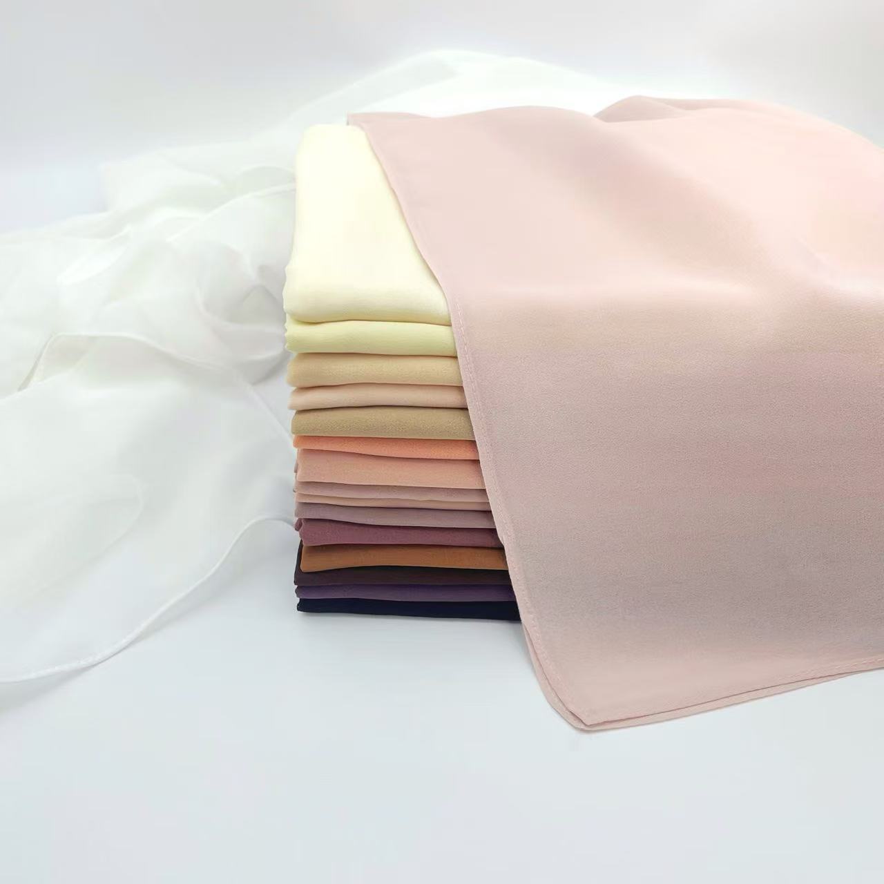 130g 직각 롤 엣지 여름 단색 진주 쉬폰 롱 스카프 말레이시아 쉬폰 비즈 스카프 단색 헤드 스카프스토어 가기