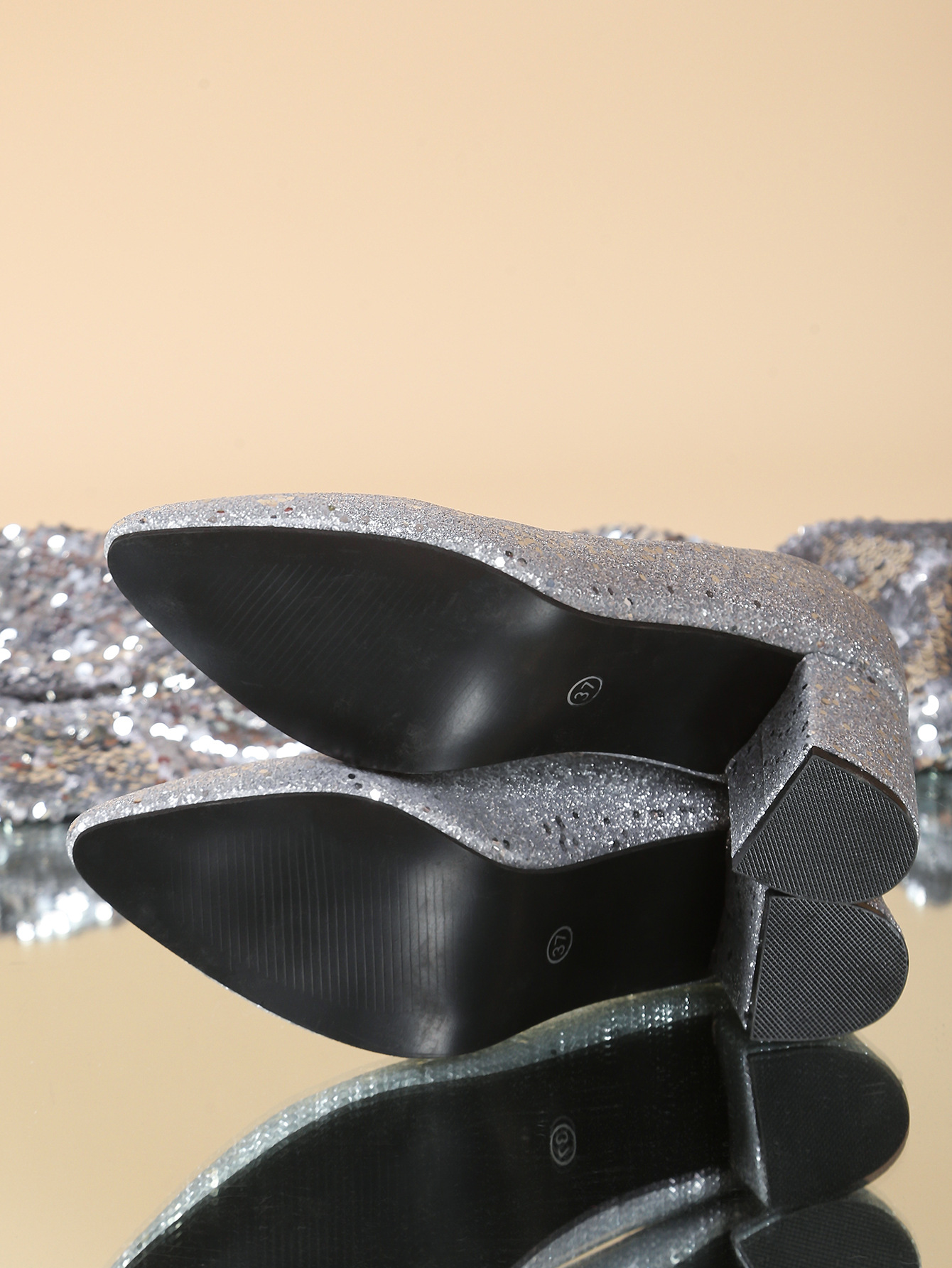 대외 무역 글리터 크리스탈 슈즈 스팽글 로우 힐 여성 2025 새로운 스타일 뾰족한 발가락 대형 연예인 실버 신부 결혼식 신발스토어 가기