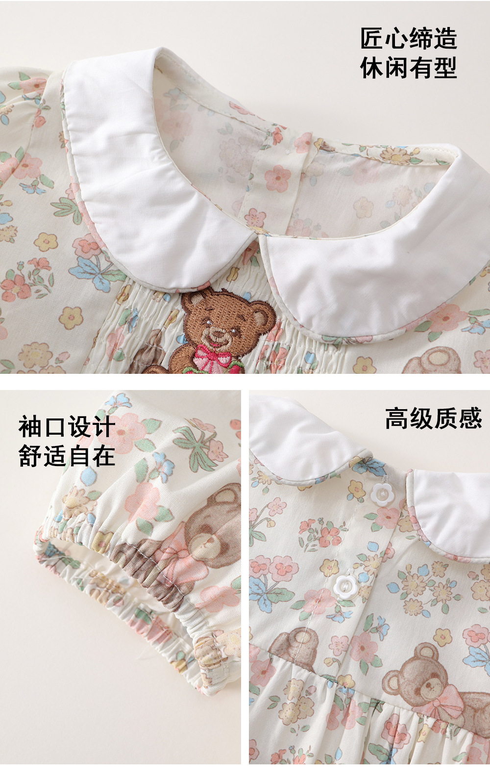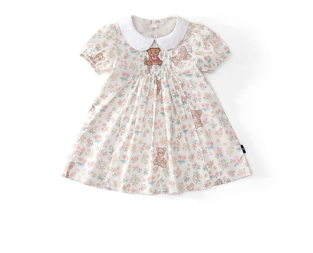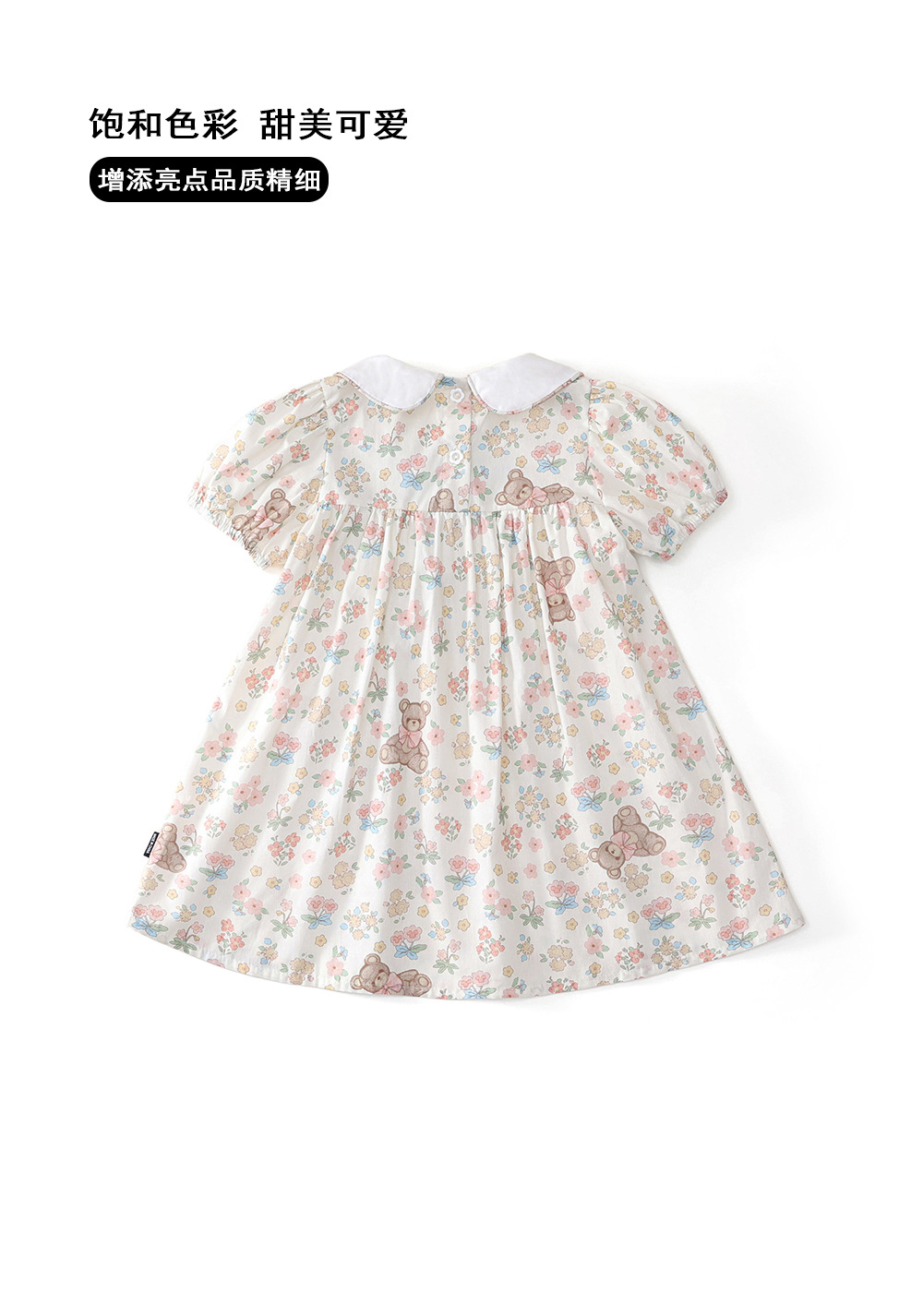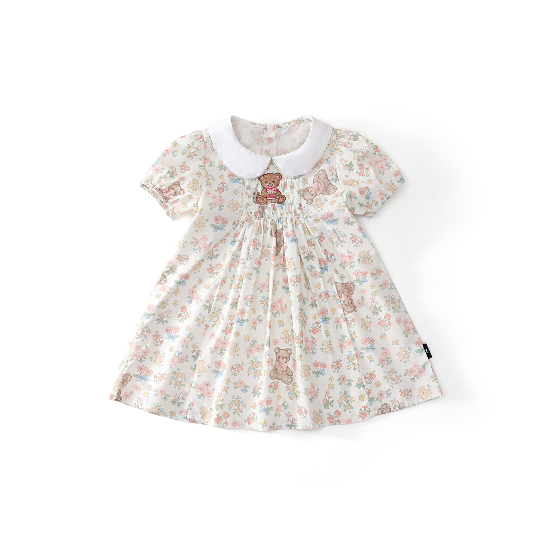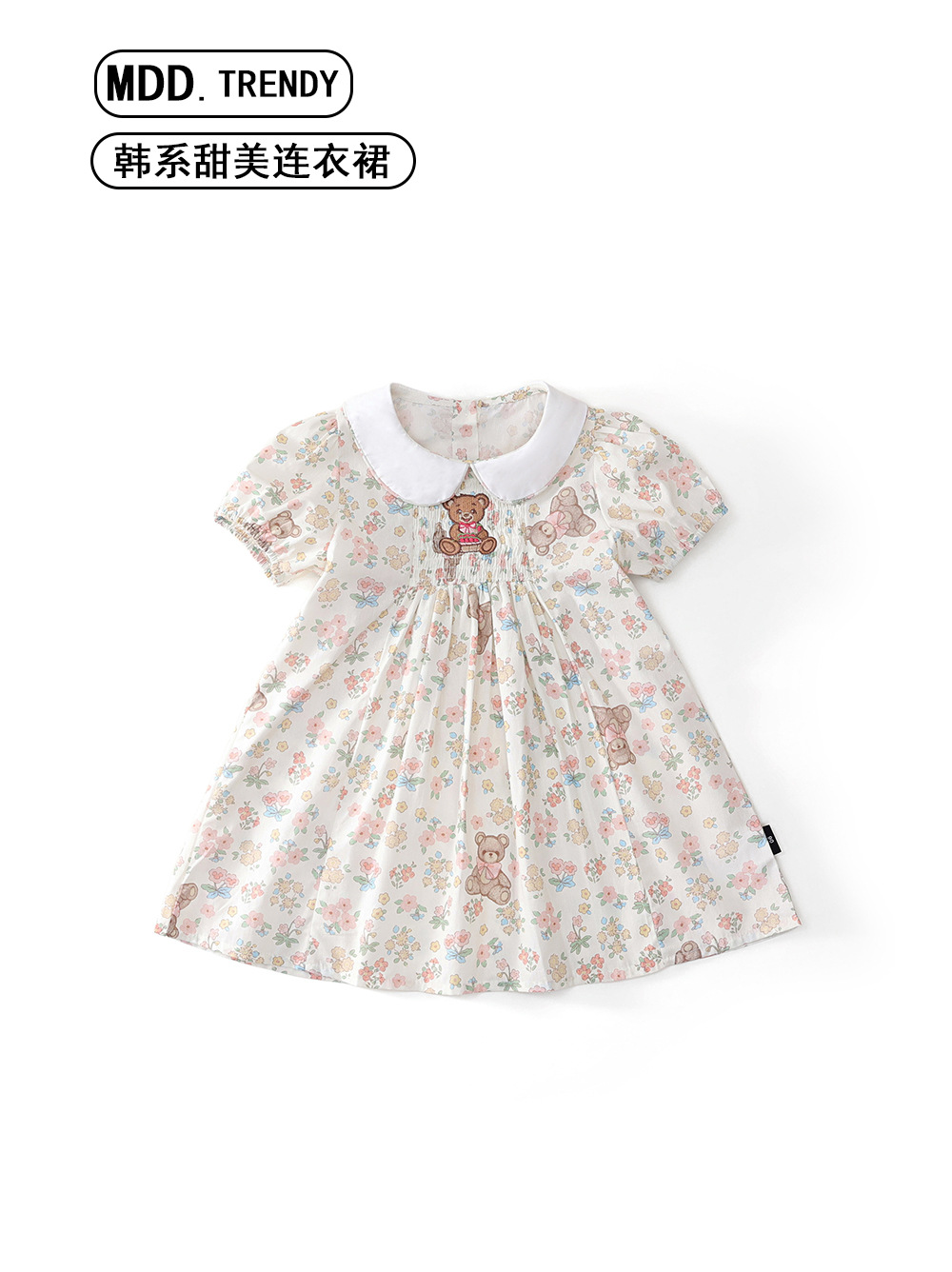 MDD 곰 수 놓은 반팔 소녀 드레스 2025 여름 새 인형 옷깃 서양식 인쇄 어린이 드레스스토어 가기