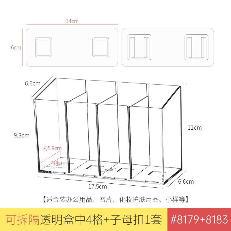 • 8179. 분리형 칸막이 투명 상자 - 중간 크기, 수납칸 4개, 프리 버클 1개