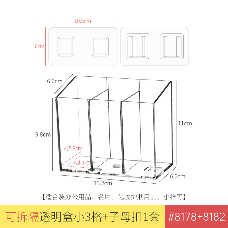 • 8178. 분리형 칸막이 투명 상자 - 작은 크기, 수납칸 3개, 프리 버클 1개