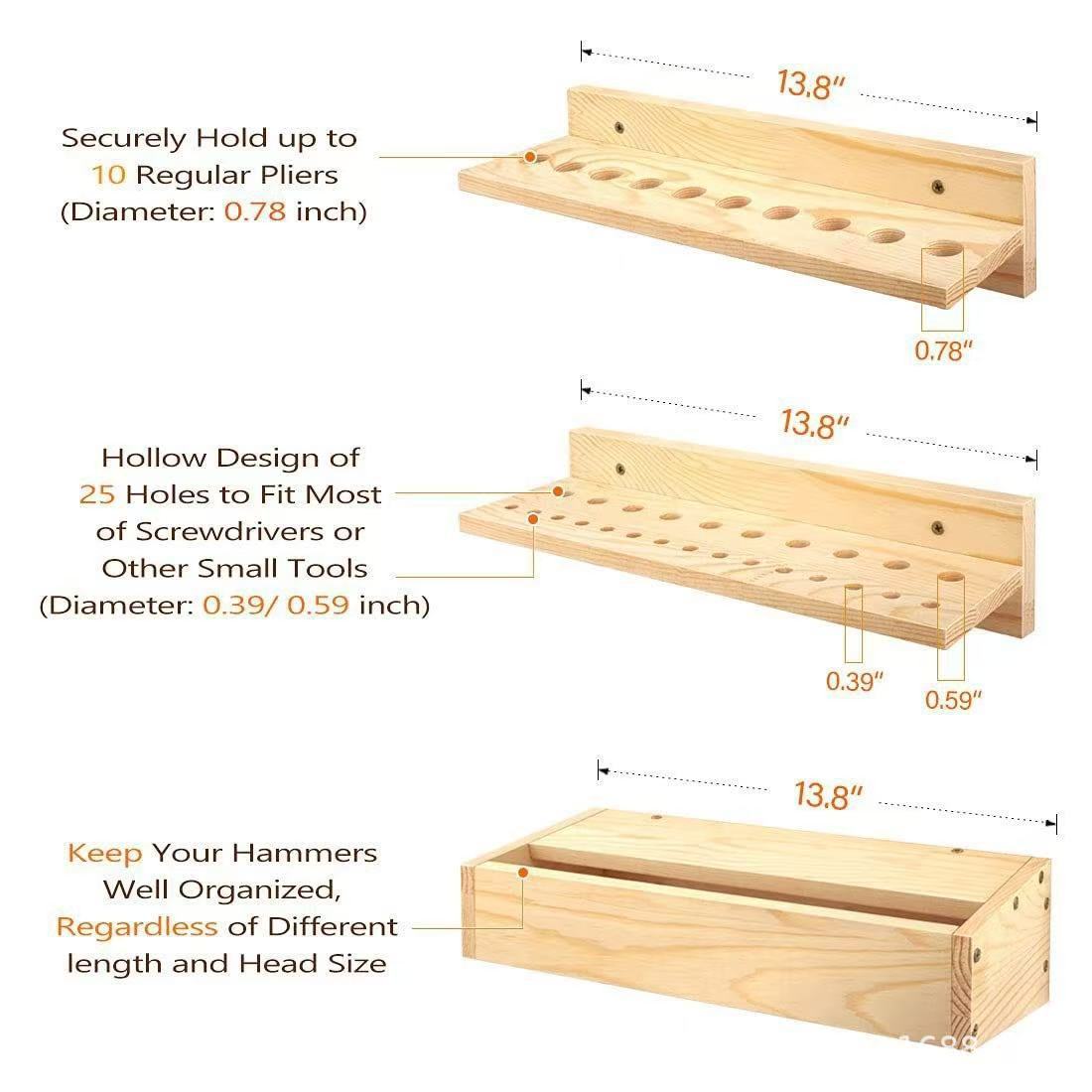 나무 벽걸이형 펜치 도구 보관함 펀치 없는 렌치 망치 하드웨어 도구 보관 걸이 단단한 나무