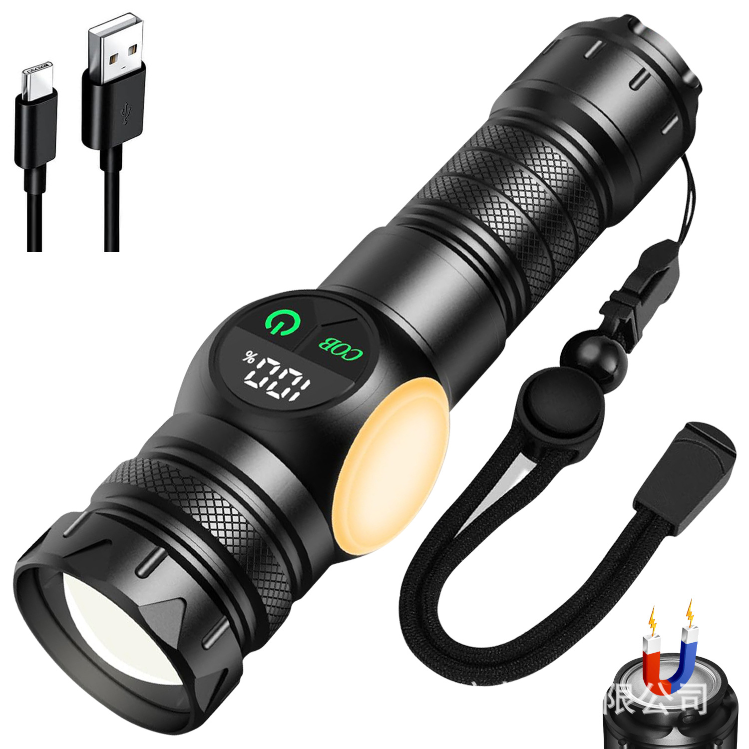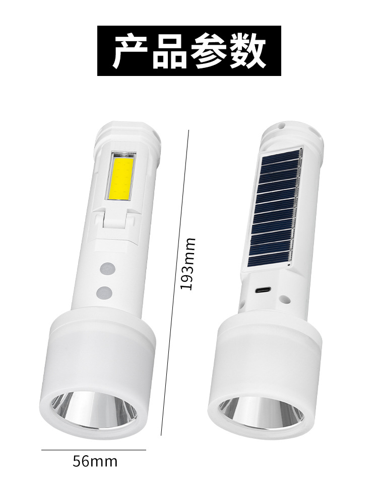 국경 간 새로운 다기능 태양 광 손전등 작업 조명 유형-c 고속 충전 쿨 손전등 캠핑 라이트스토어 가기