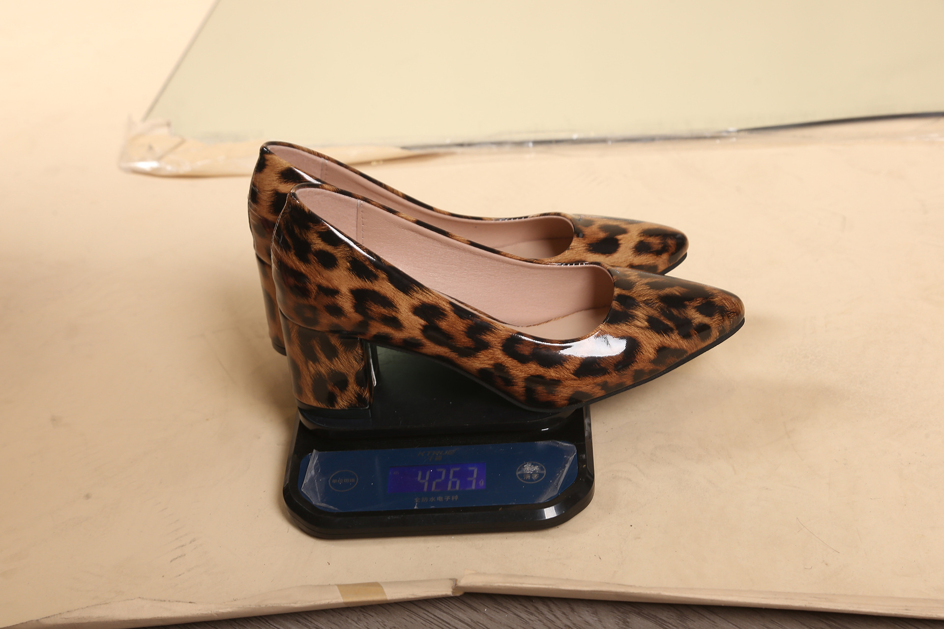 유럽과 미국의 대형 하이힐 여성 클래식 뾰족한 두꺼운 하이힐 섹시한 레오파드 프린트 특허 가죽 연회 파티 신발스토어 가기
