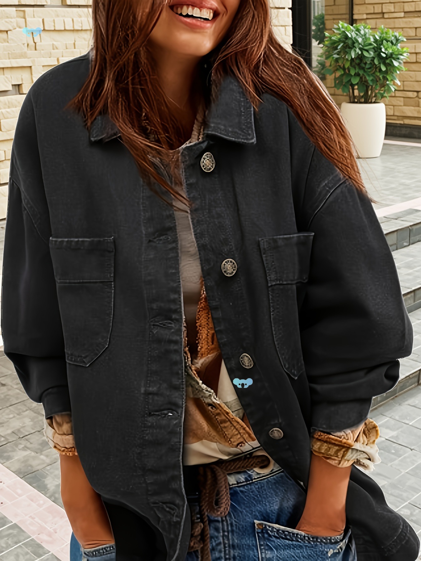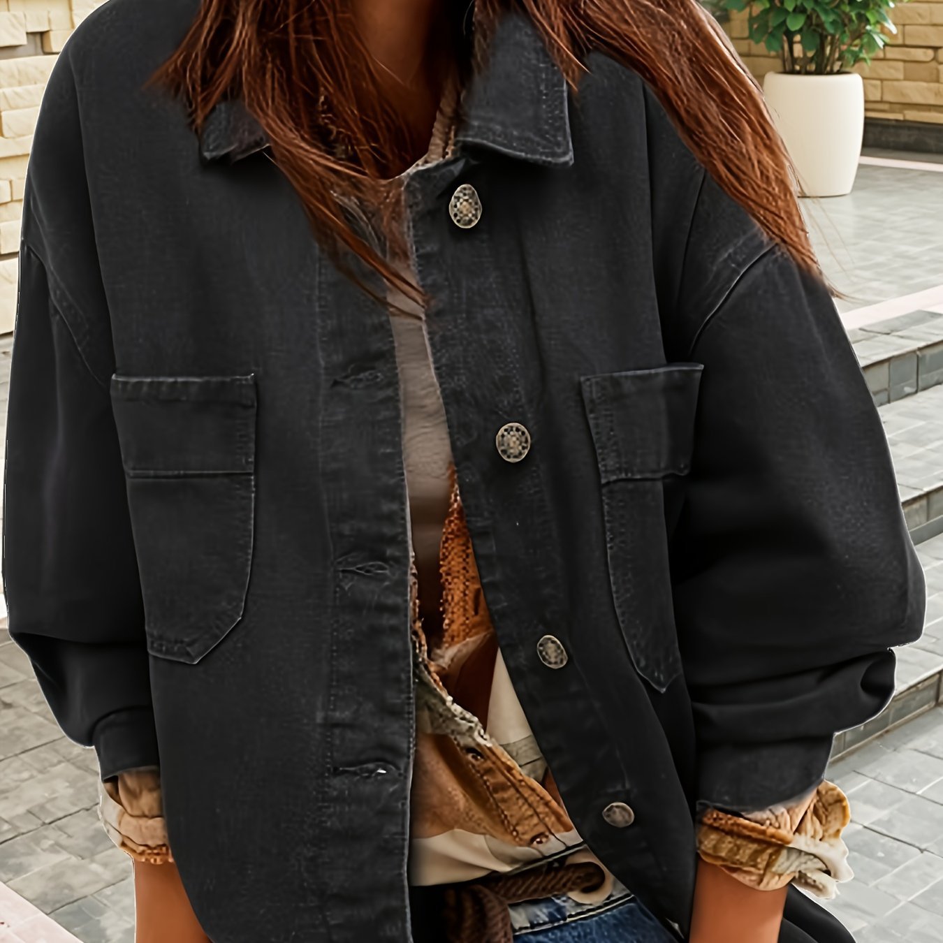 여성용 블랙 데님 재킷 빈티지 스트리트 스타일 루즈핏