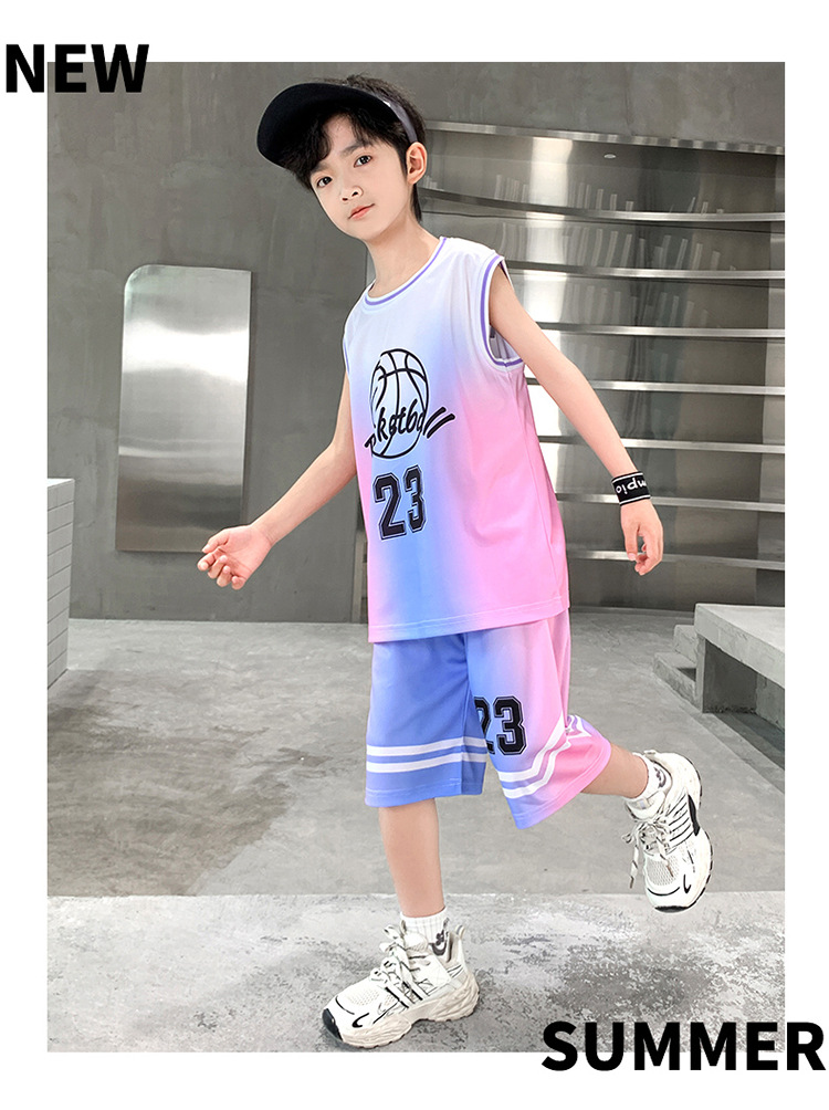 소년의 빠른 건조 양복 2025 새로운 어린이 민소매 농구 유니폼 큰 어린이 소년 여름 운동복 저지 여름