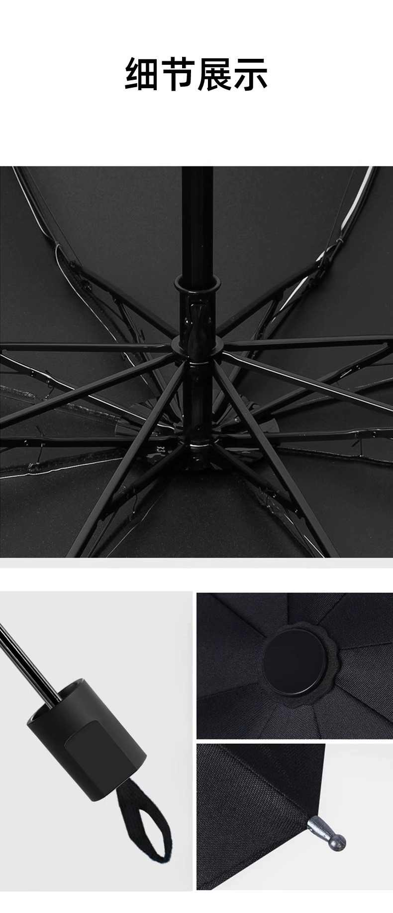 • 자동 모델 [업그레이드된 두꺼운 비닐] 비가 오나 눈이 오나 사용 가능한 8개 뼈 - 흑요석 검정색(upf50 자연광 불투과)