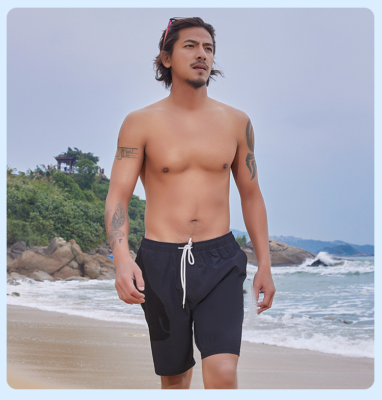 LAGCEN 남성용 솔리드 컬러 해변 캐주얼 수영 바지 속건성 당황 방지 안감 비치 바지 온천 수영 장비