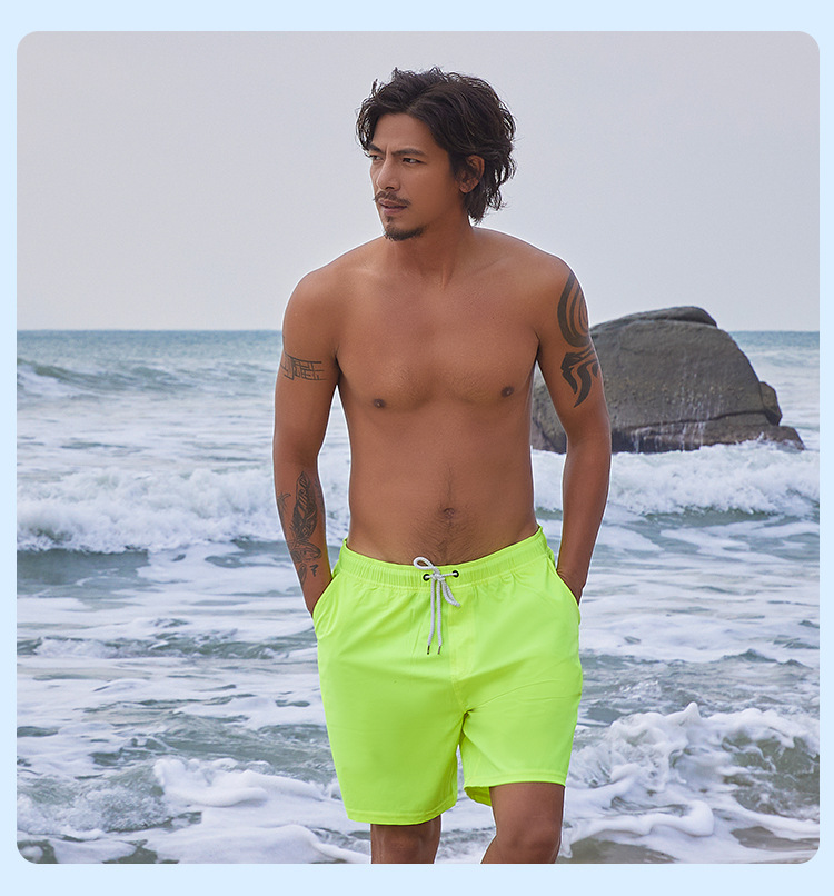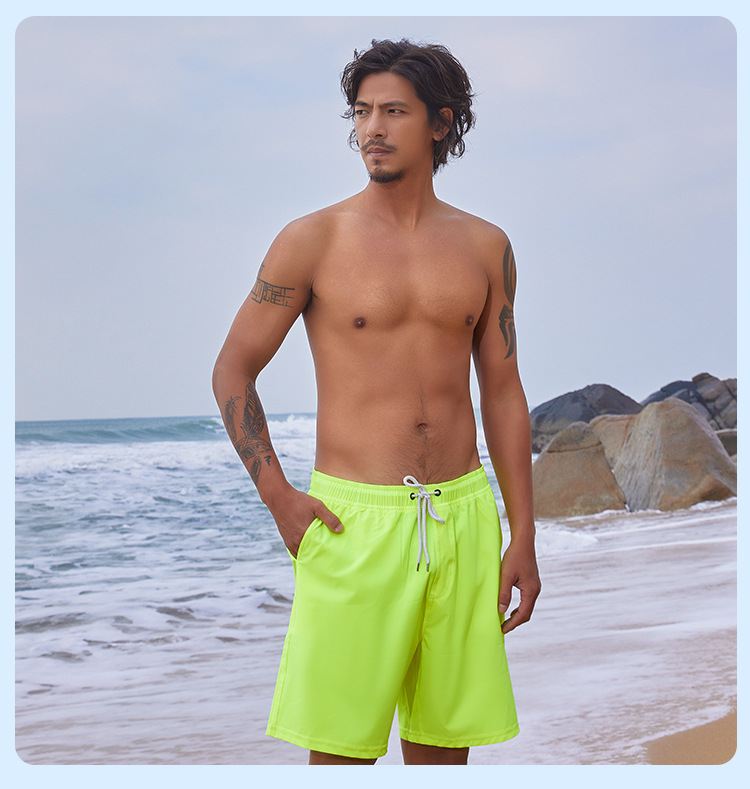 LAGCEN 남성용 솔리드 컬러 해변 캐주얼 수영 바지 속건성 당황 방지 안감 비치 바지 온천 수영 장비스토어 가기