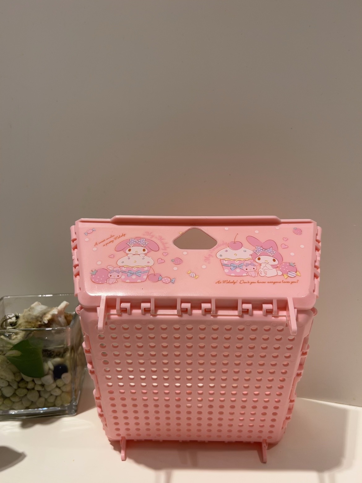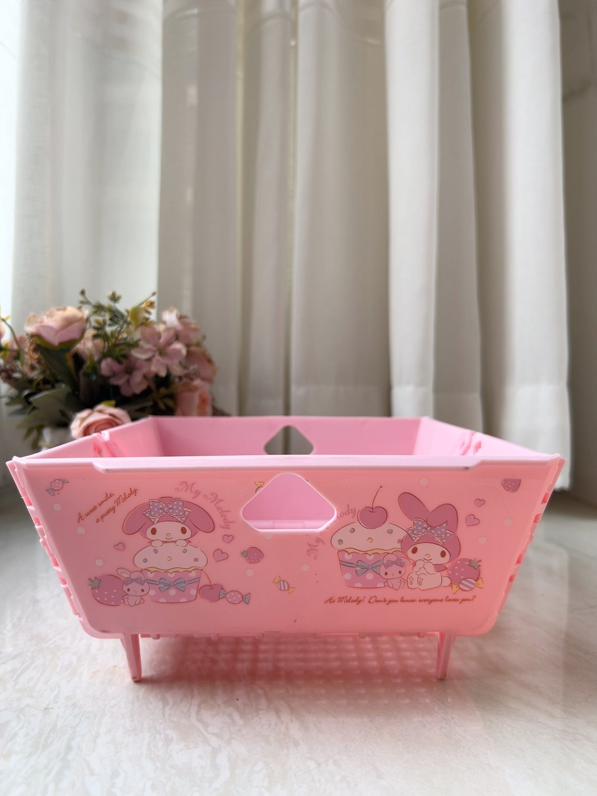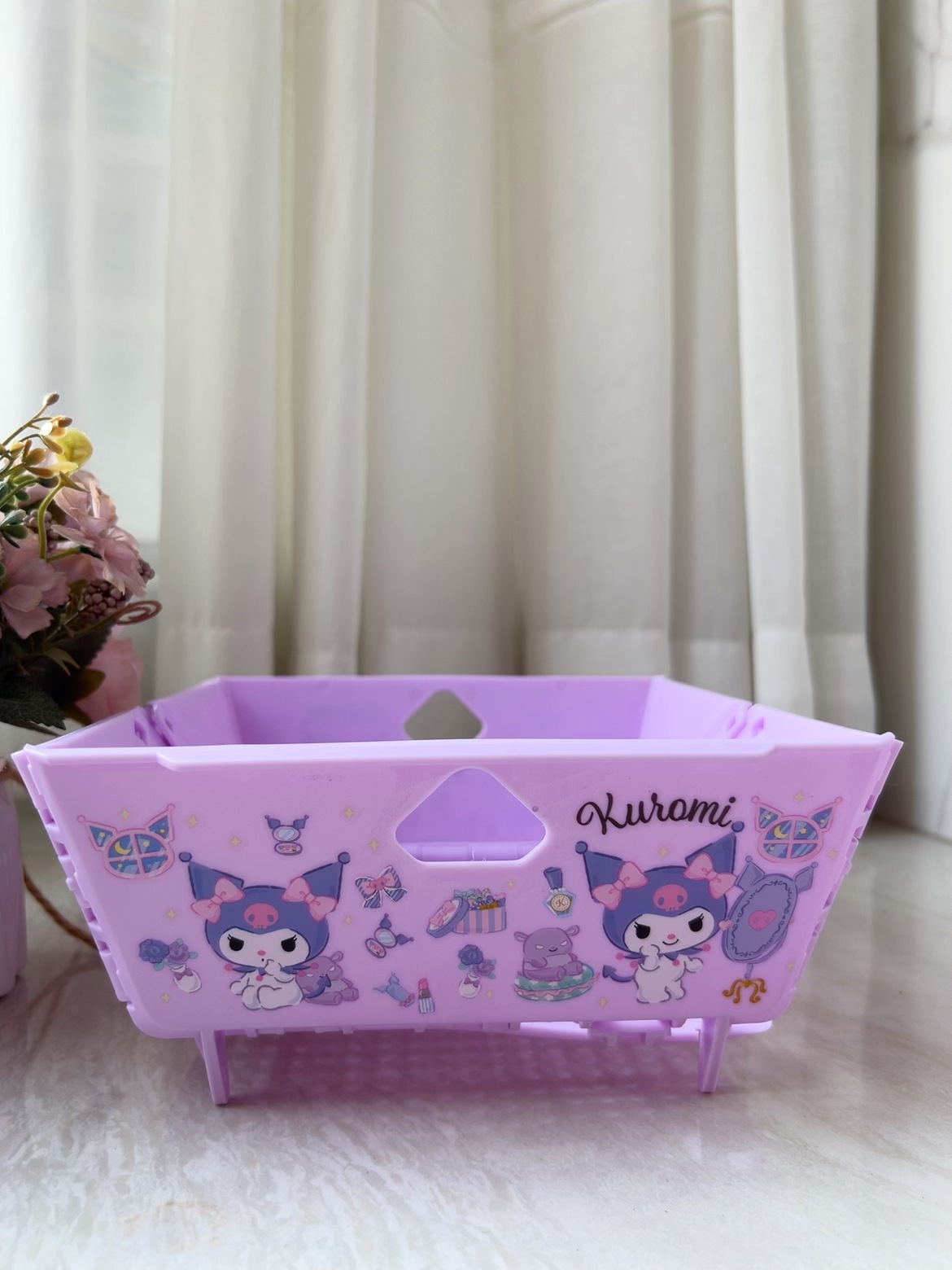 멜로디 MD 배수 바구니 쿠로미 과일 바구니 KT 접이식 휴대용 플라스틱 보관 바구니 작은 흰색 야채 세척 바구니