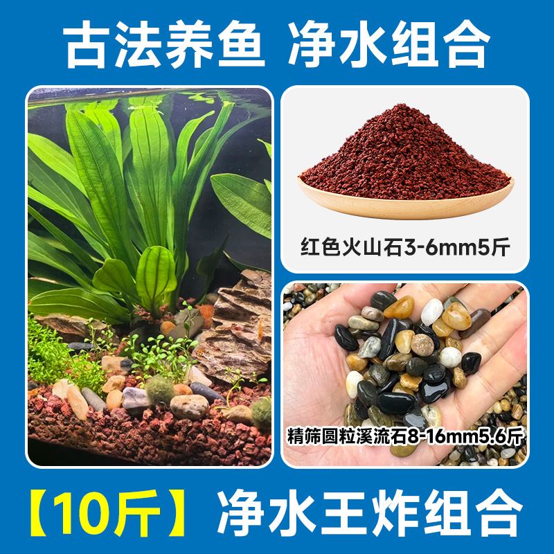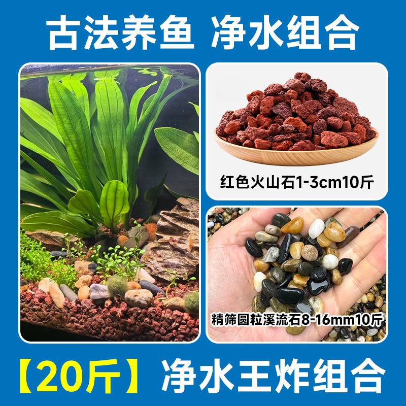 • [기장 탱크 패키지] 5-8mm 붉은 화산석 2.5kg개 + 8-16mm 미세하게 체로 쳐진 둥근 입자 시냇물 돌 2.8kg개 [길이 40*가로 30cm 사각형 탱크