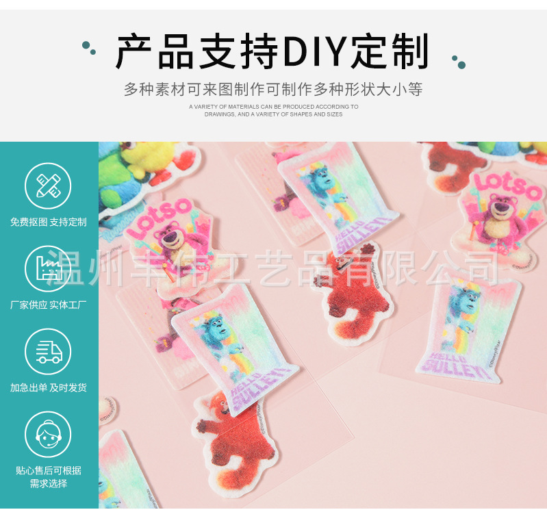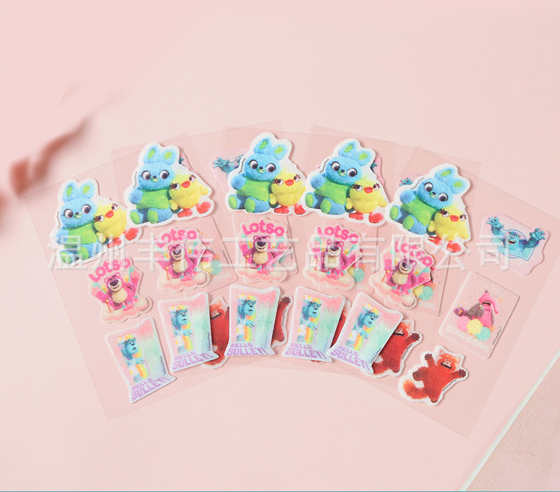 플록 펠트 천 스티커 귀여운 DIY 어린이 장난감 스티커 만화 자체 접착 펠트 천 스티커스토어 가기