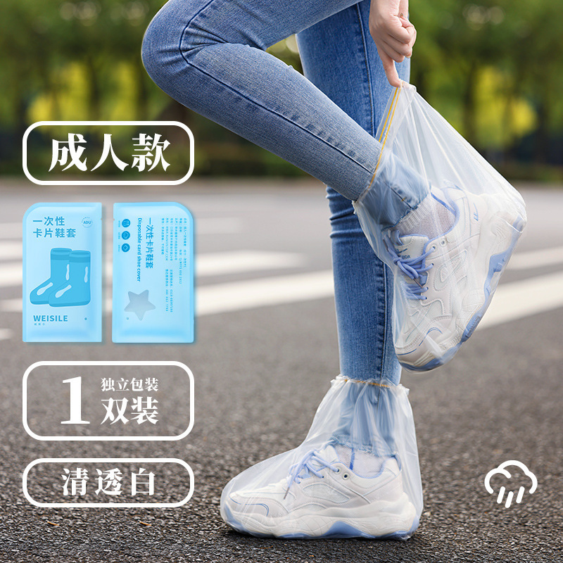 • 성인용 일회용 신발 커버, 중간 튜브, 투명 흰색, 1쌍(부츠 유형 + 카드 포장) - 특허 모델
