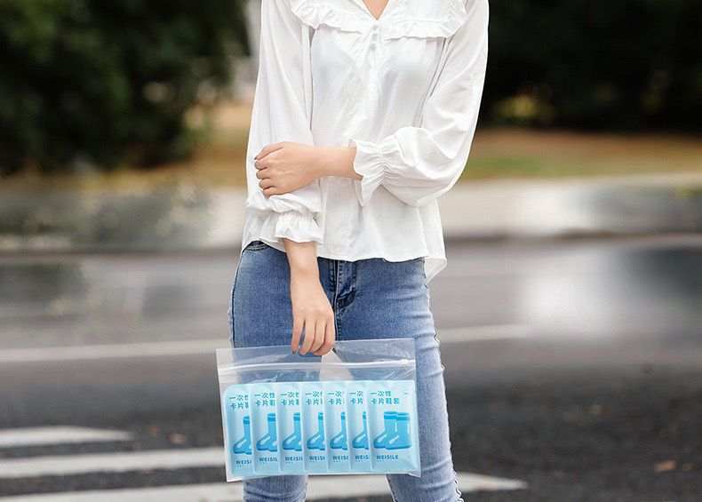 • 어린이용 일회용 신발 커버, 중통, 투명 흰색, 1켤레(부츠형 + 카드 포장) - 특허모델