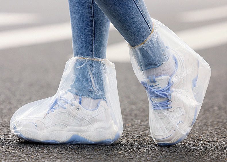 비오는 날을 위한 휴대용 일회용 중간 튜브 방수 신발 커버, 방수 및 미끄럼 방지 투명 발 커버, 야외용 두꺼운 내마모성 장화스토어 가기