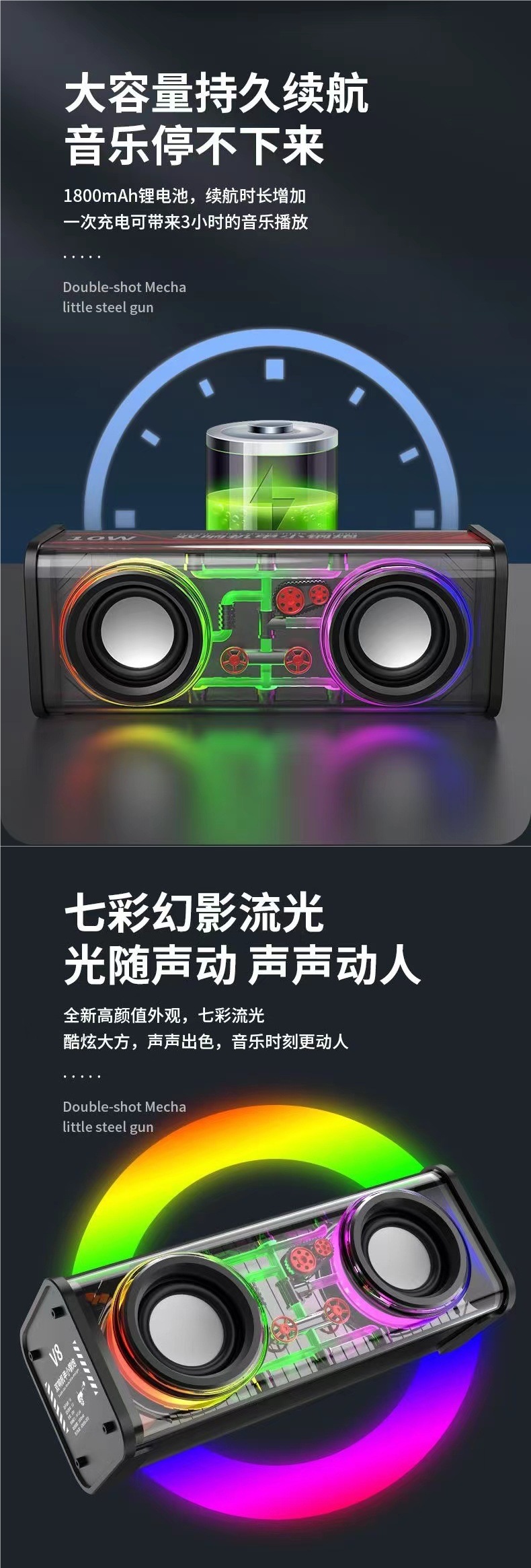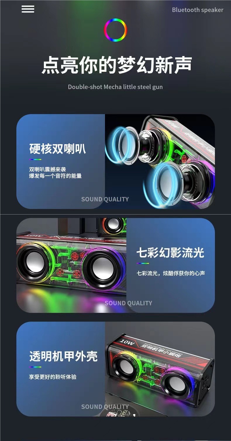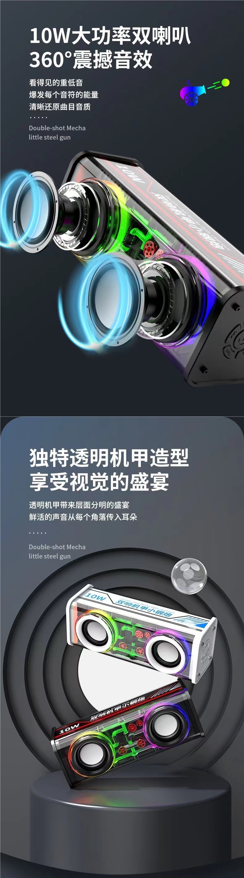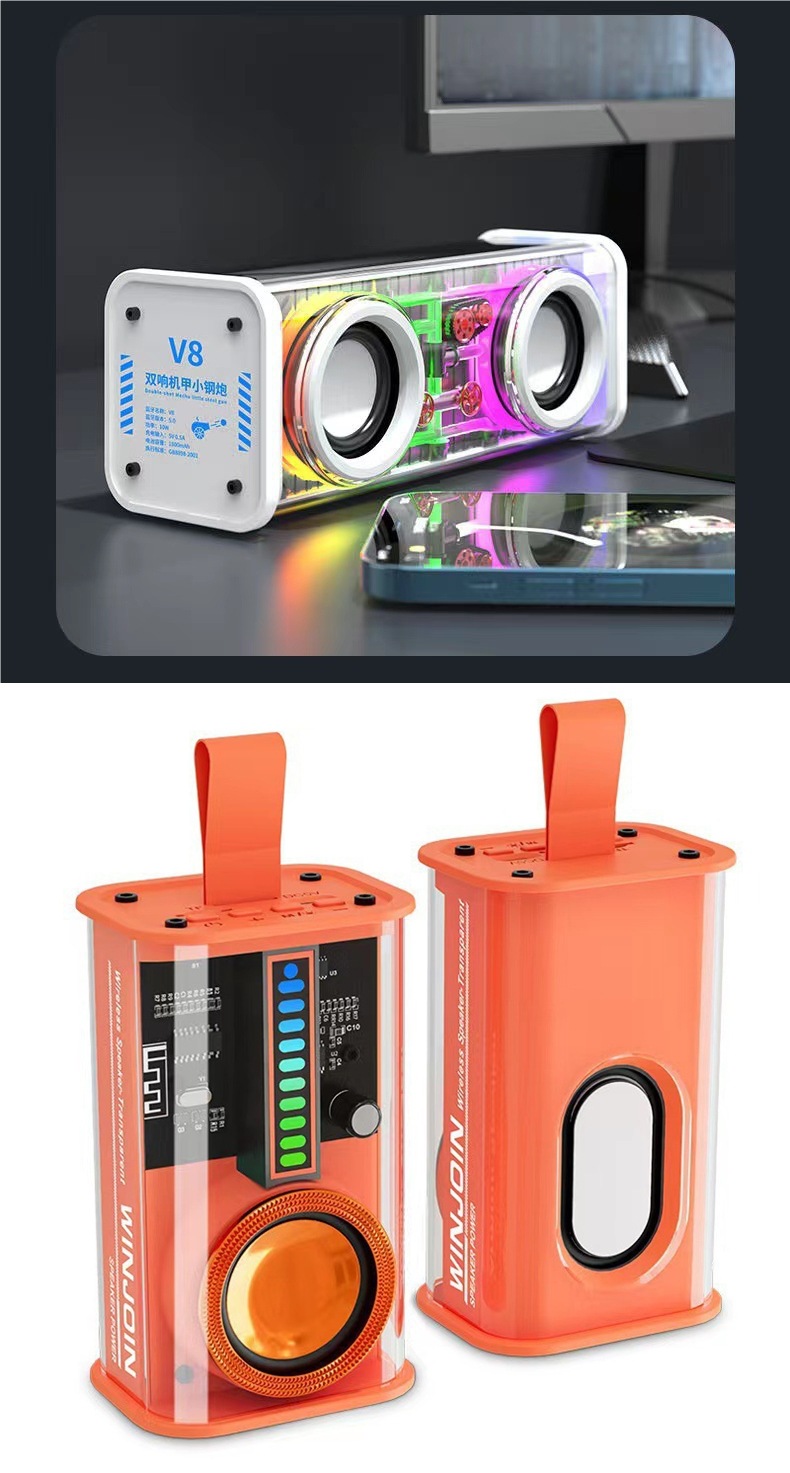 인터넷 연예인 블루투스 오디오 투명 메카 무선 미니 스피커 대용량 다채로운 조명 서브 우퍼 블랙 오렌지