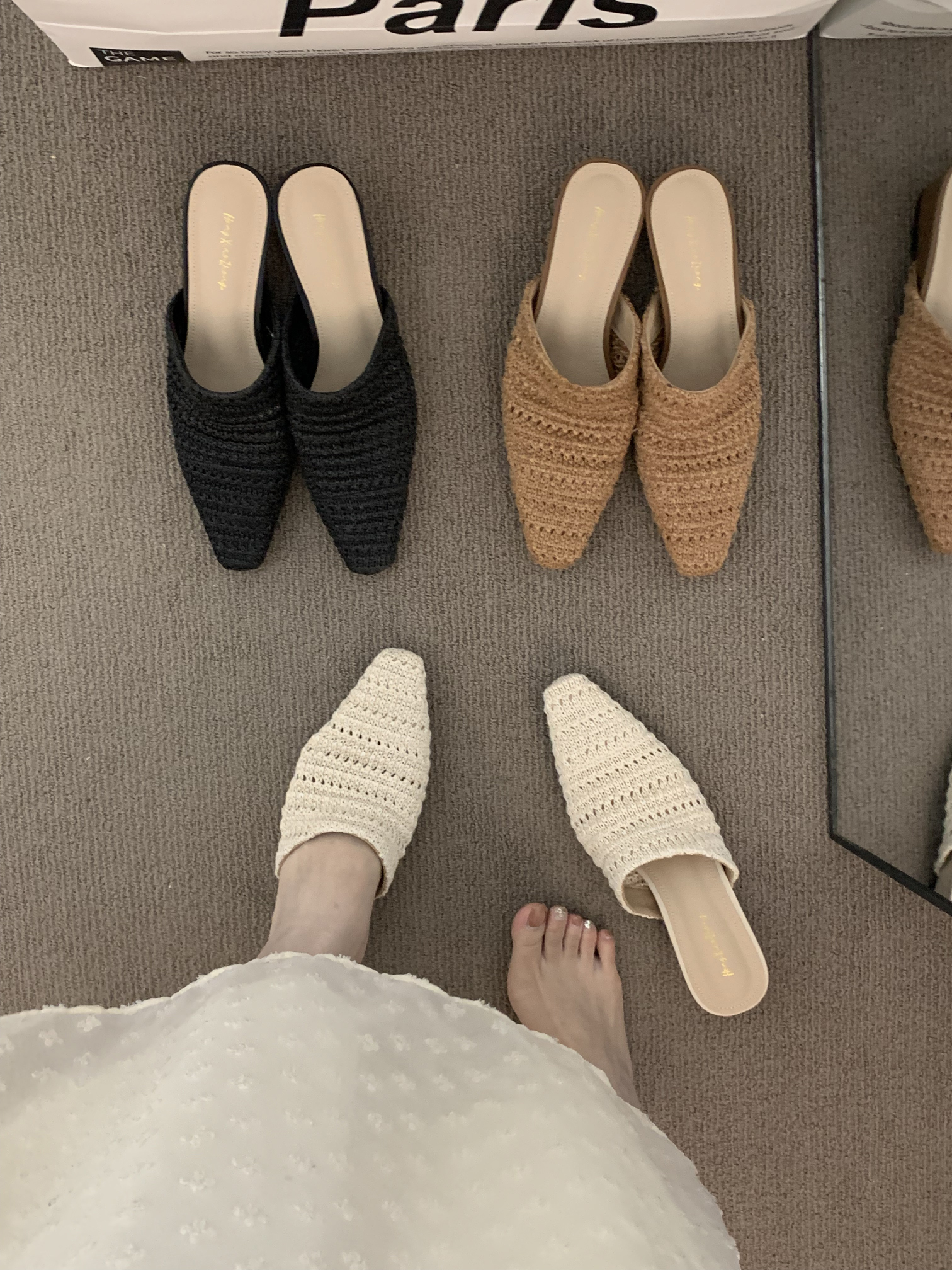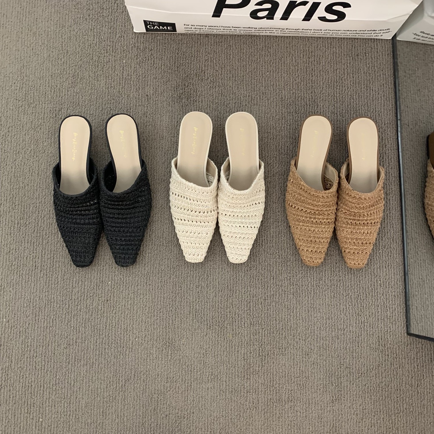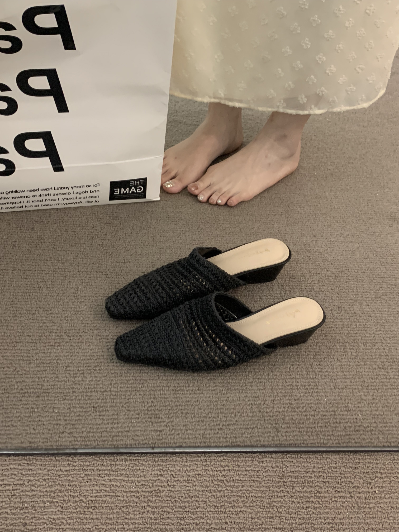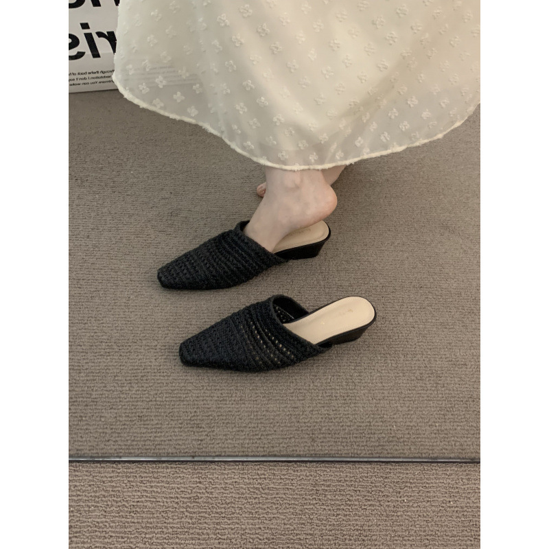 여성용 프렌치 니치 웨지 우븐 하프 슬리퍼, 2025 여름 하이힐, 스커트, 이브닝 토캡 슈즈스토어 가기