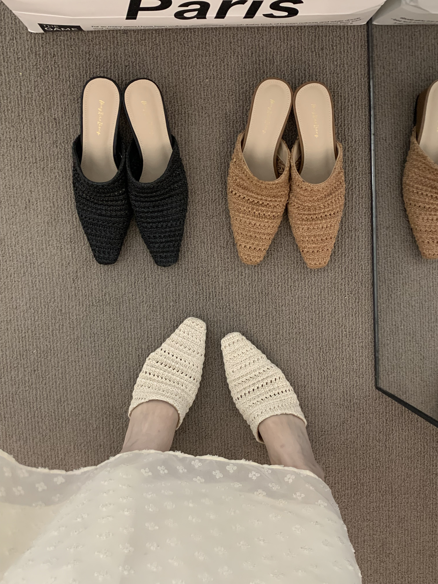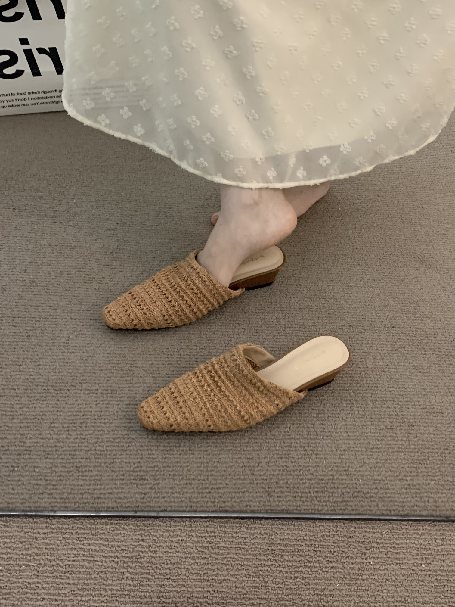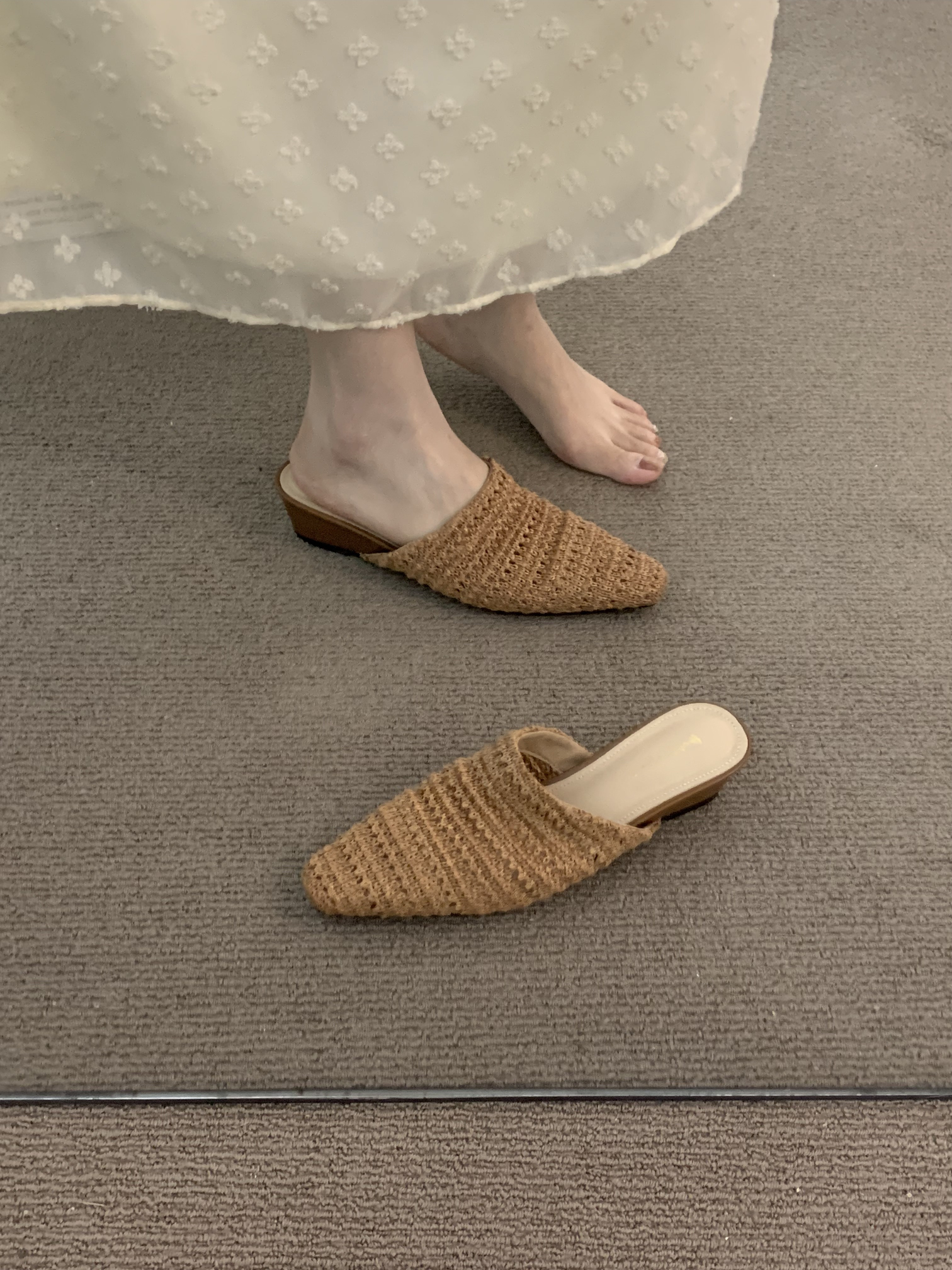 여성용 프렌치 니치 웨지 우븐 하프 슬리퍼, 2025 여름 하이힐, 스커트, 이브닝 토캡 슈즈스토어 가기