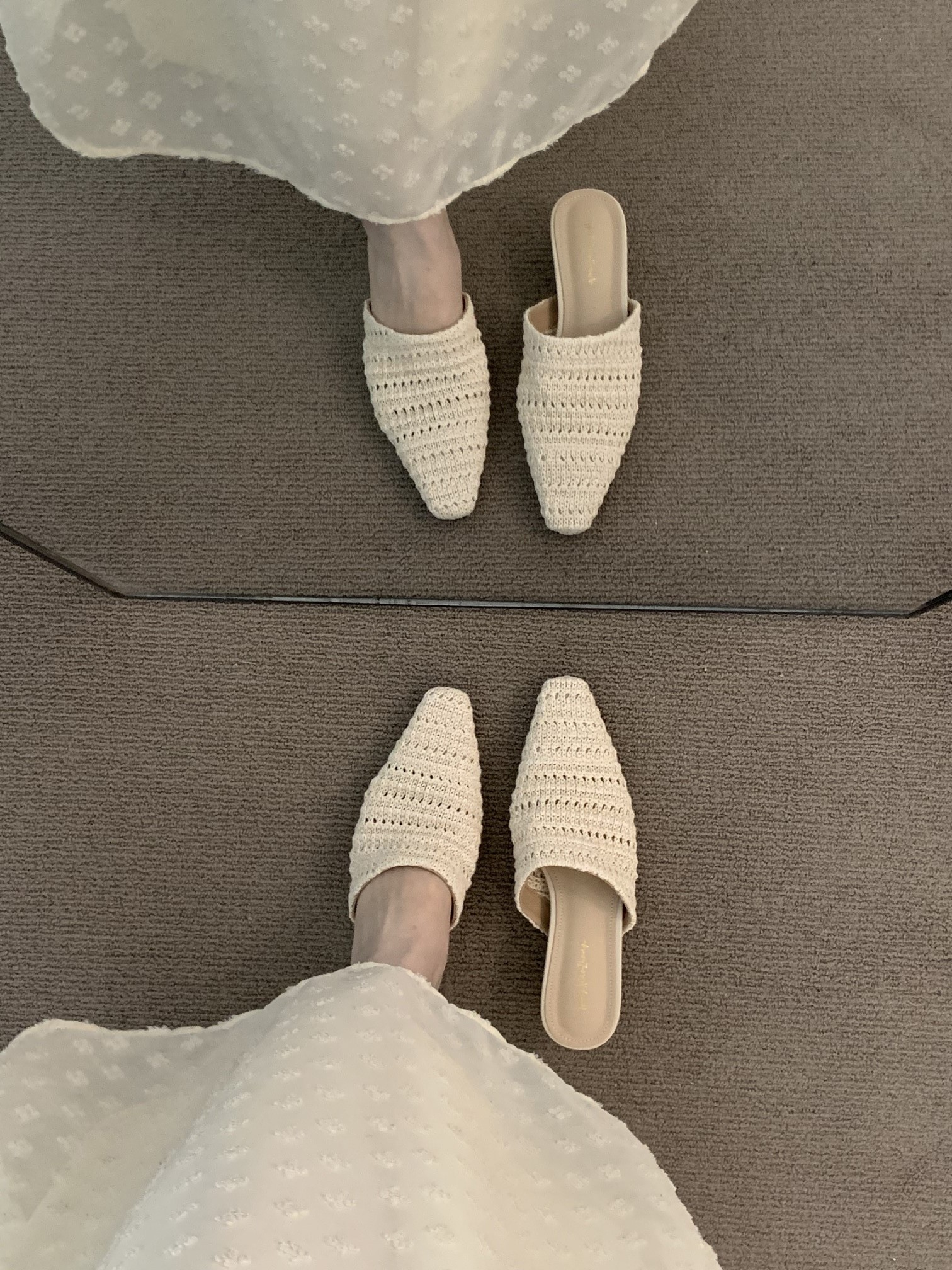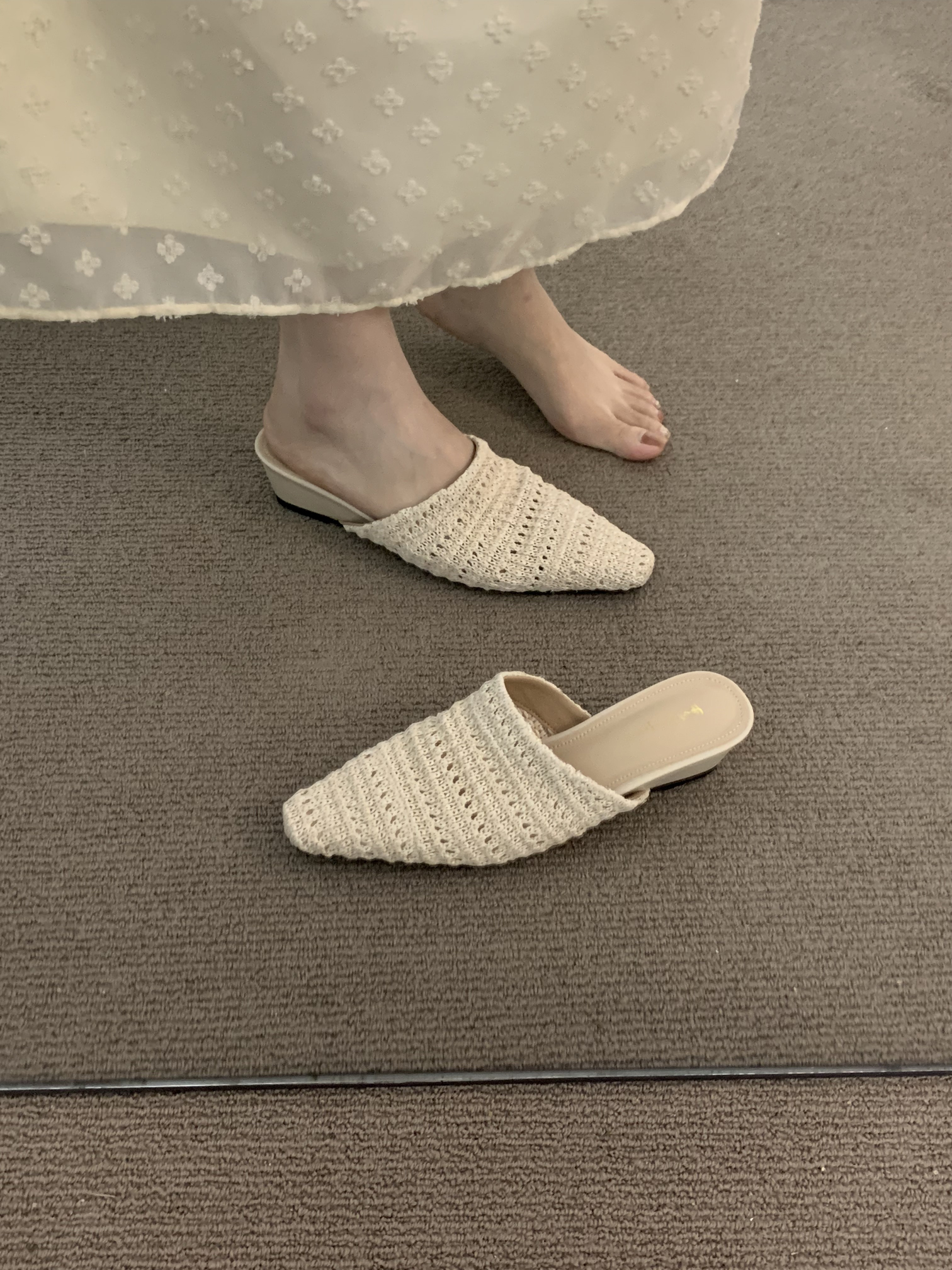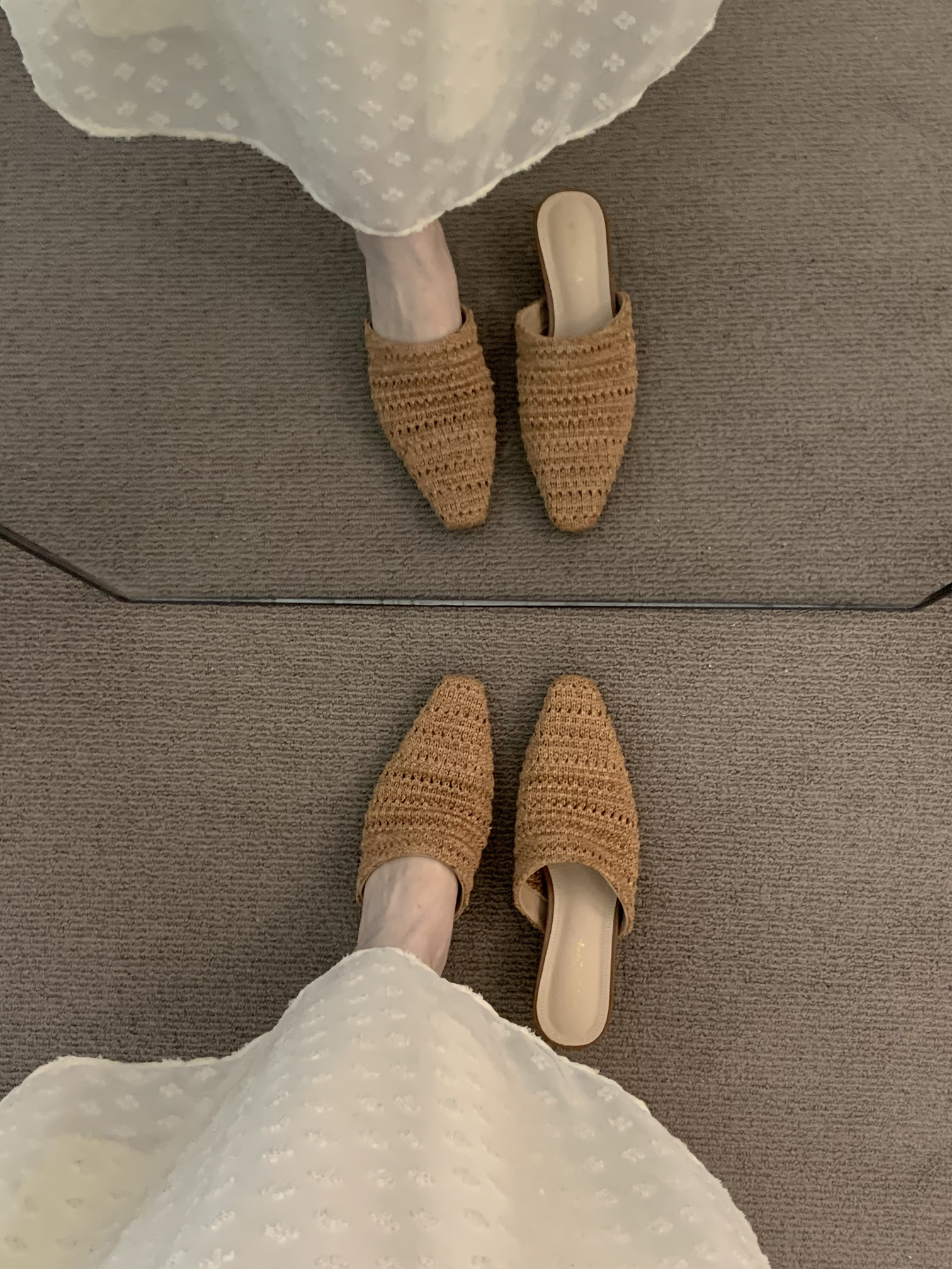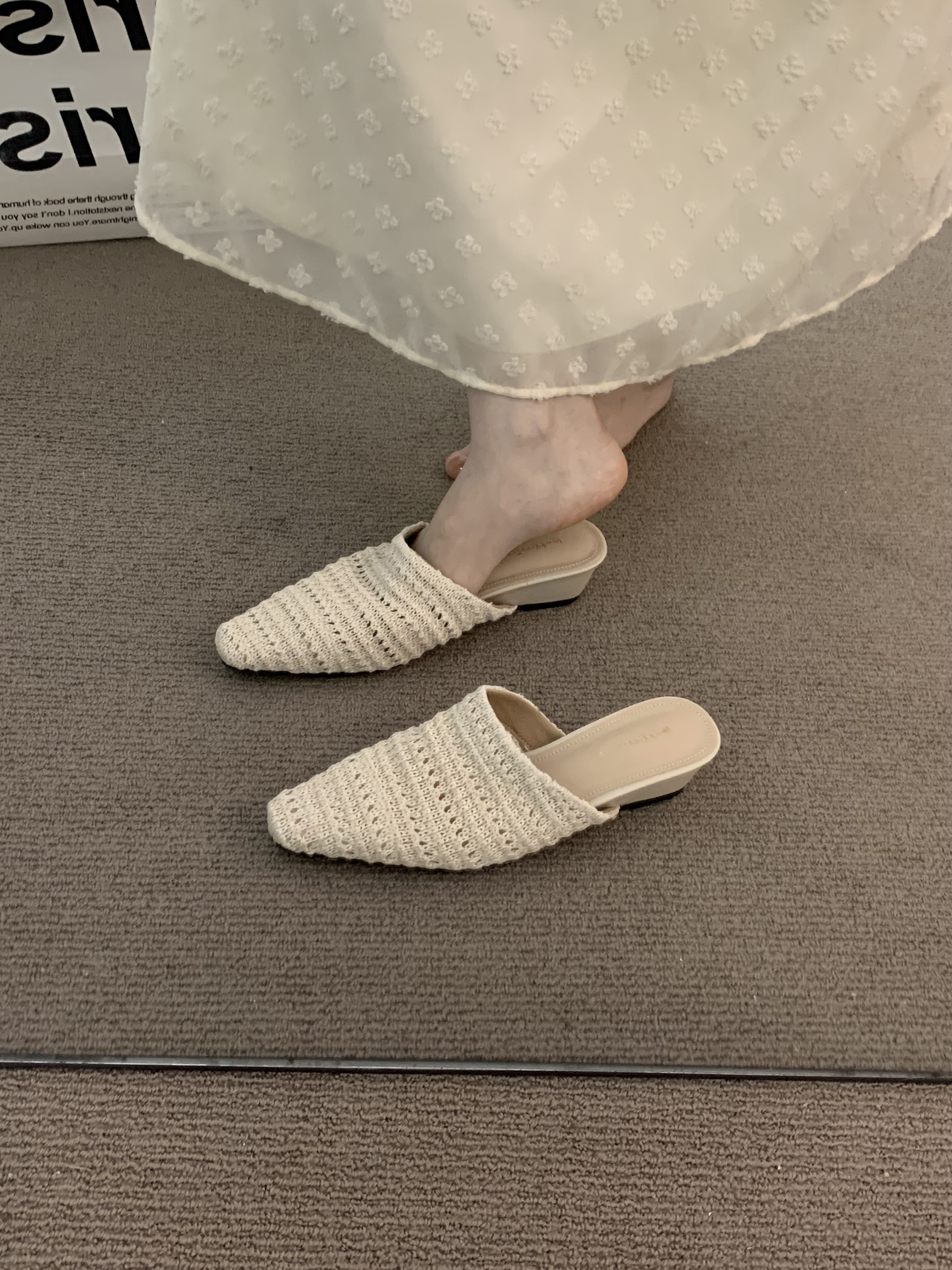 여성용 프렌치 니치 웨지 우븐 하프 슬리퍼, 2025 여름 하이힐, 스커트, 이브닝 토캡 슈즈스토어 가기