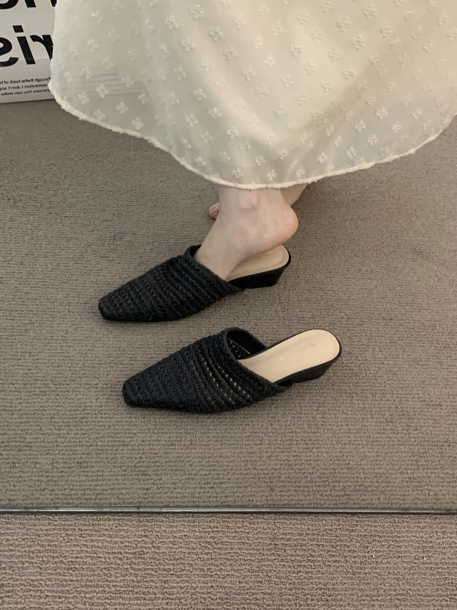 여성용 프렌치 니치 웨지 우븐 하프 슬리퍼, 2025 여름 하이힐, 스커트, 이브닝 토캡 슈즈