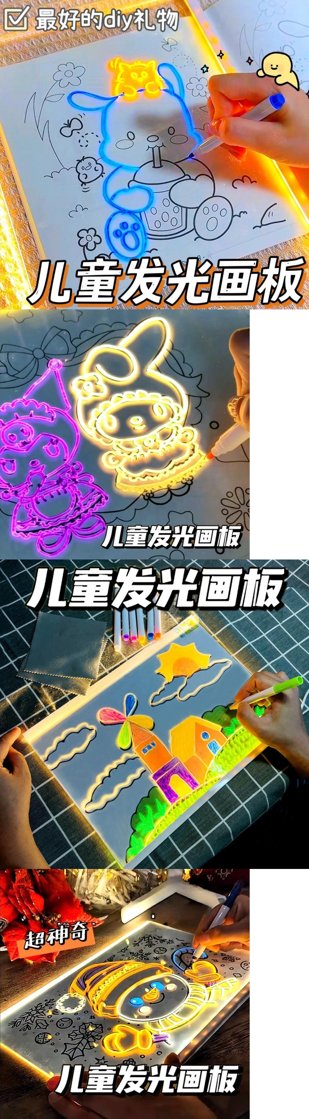 재사용 가능한 어린이 빛나는 드로잉 보드 diy 필기 보드 어린이 눈 보호 드로잉 보드 무료 펜 지울 수있는 장난감스토어 가기