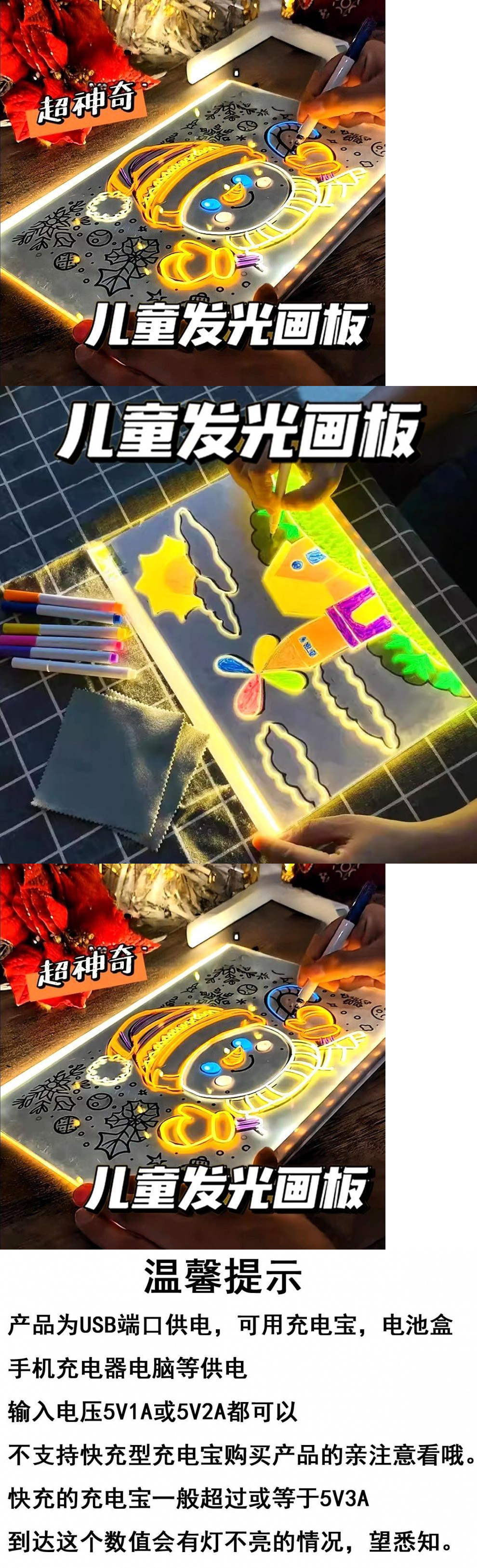 재사용 가능한 어린이 빛나는 드로잉 보드 diy 필기 보드 어린이 눈 보호 드로잉 보드 무료 펜 지울 수있는 장난감