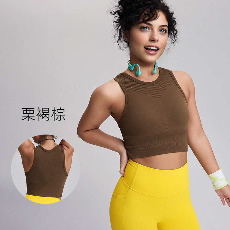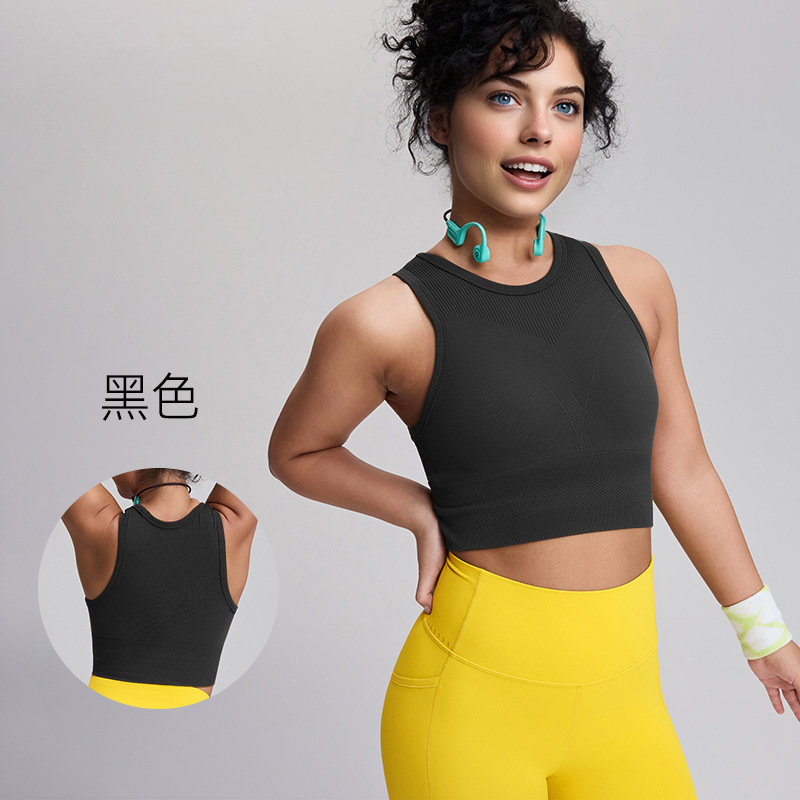 새로운 스타일의 여성용 여름용 민소매 스포츠웨어, 솔리드 컬러 요가복, 가슴 패드 내장 일체형 외출용 고정컵 브라탑 베이스탑스토어 가기