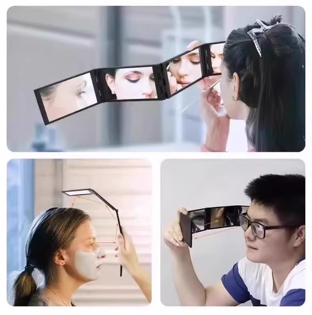 접이식 4면거울로 셀프컷팅을 하고 뒷머리까지 볼 수 있는 휴대용 화장거울, 휴대용 백미러