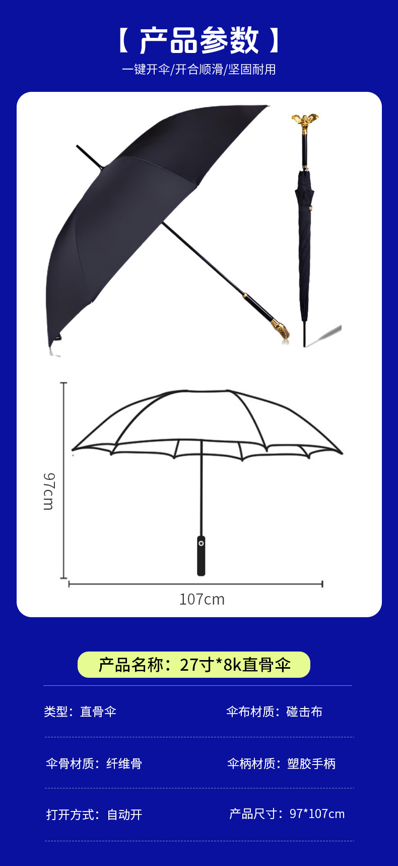 비가 오나 눈이 오나 남성과 여성을 위한 긴 손잡이가 있는 크로스보더 라이트 럭셔리 크리에이티브 우산 일본식 순수 블랙 스트레이트 레인 및 자외선 차단 우산스토어 가기