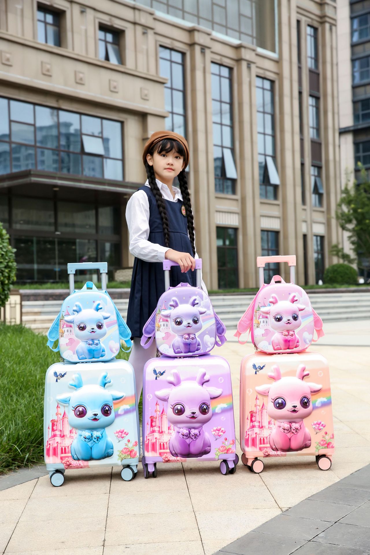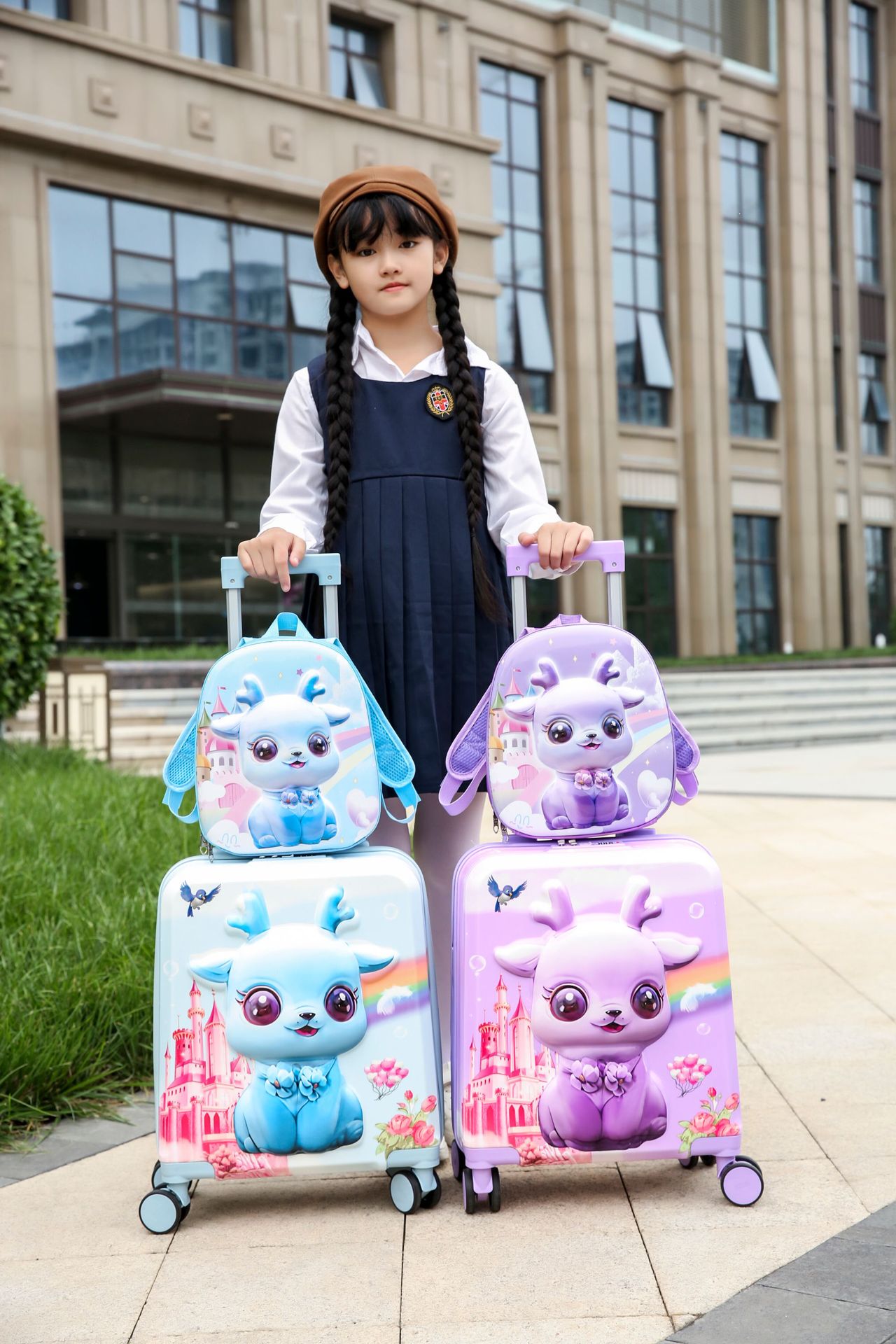 어린이용 캐리어 귀엽고 다용도인 책가방 만화 세트 트롤리 캐리어 제조업체 도매 3D 여행가방 2025년 신제품